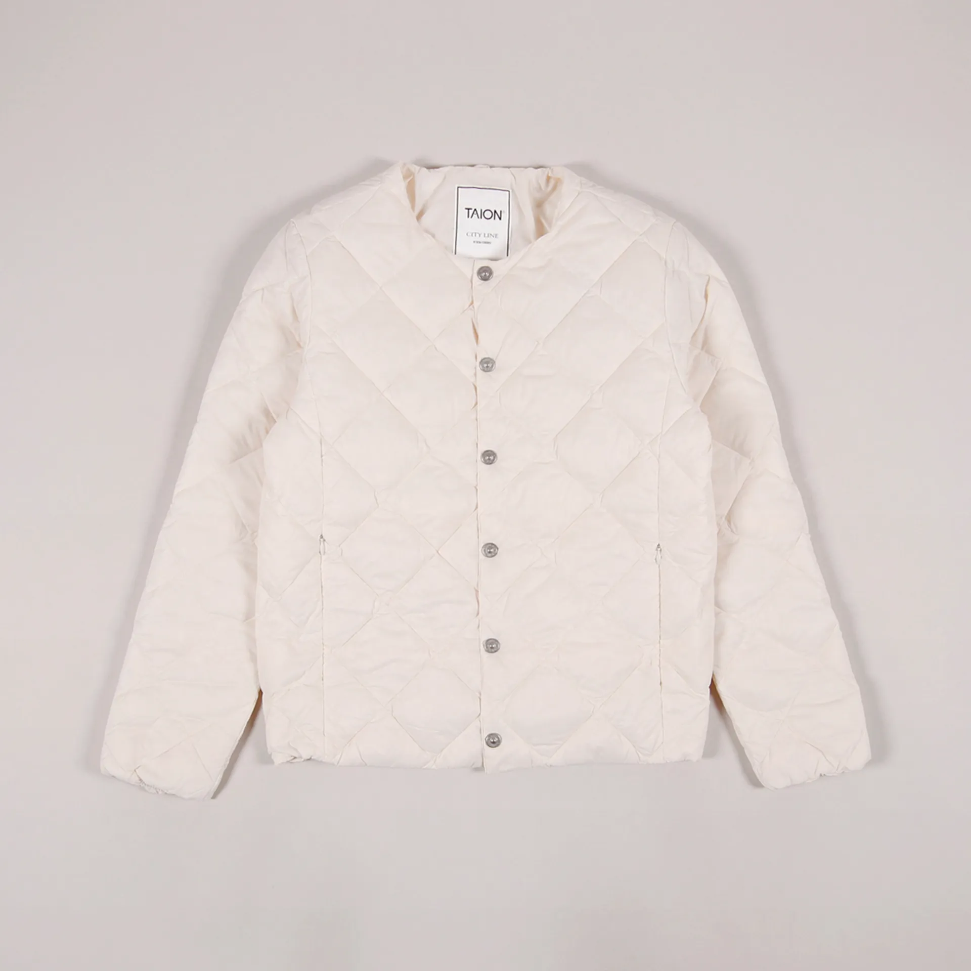 An insulated jacket from Japanese outerwear company Taion's City collection, made from a high-density nylon shell which is water-repellent, and lined with a smooth and comfortable polyester taffeta.