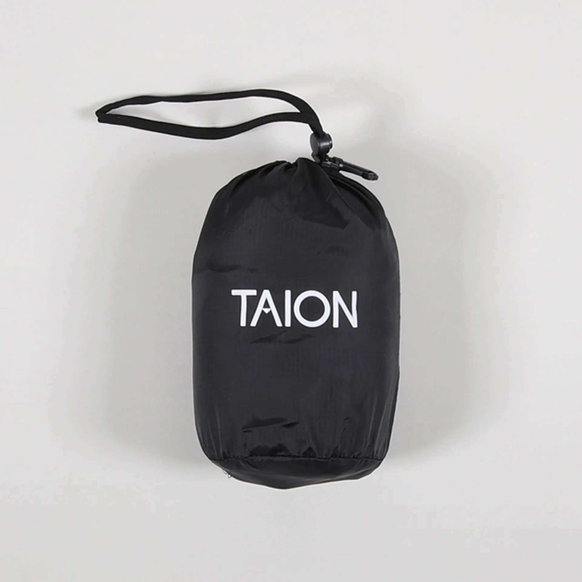 An insulated jacket from Japanese outerwear company Taion, made from a high-density nylon shell which is water-repellent, and lined with a smooth and comfortable polyester taffeta.