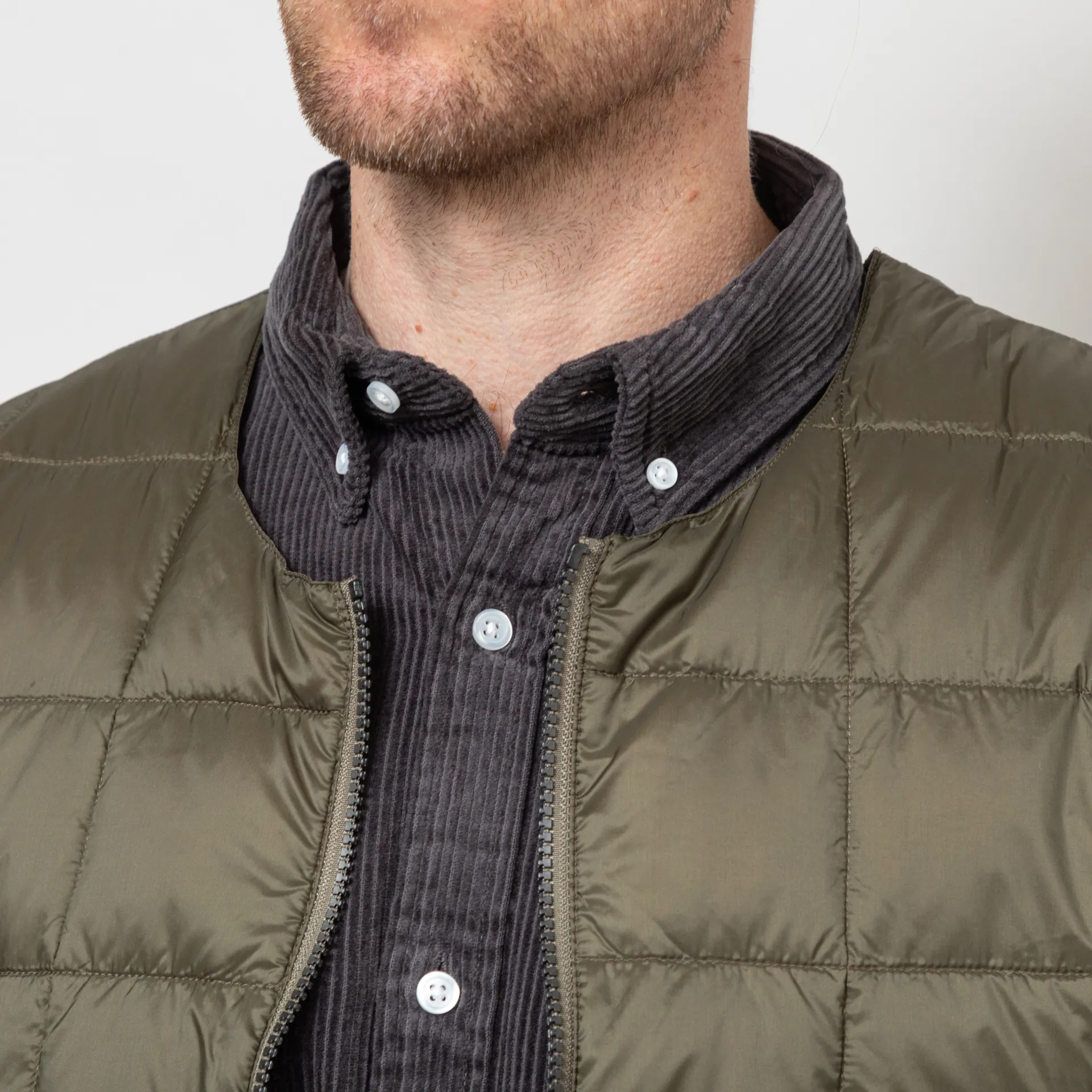 A lightweight, insulated jacket from Taion, constructed from durable quilted nylon with high-quality 800 fill-power white down insulation. It's cut in a slim fit to maximise warmth and features a full zip-through front, leading to a round neckline, with tonal binding and a two-pocket design.