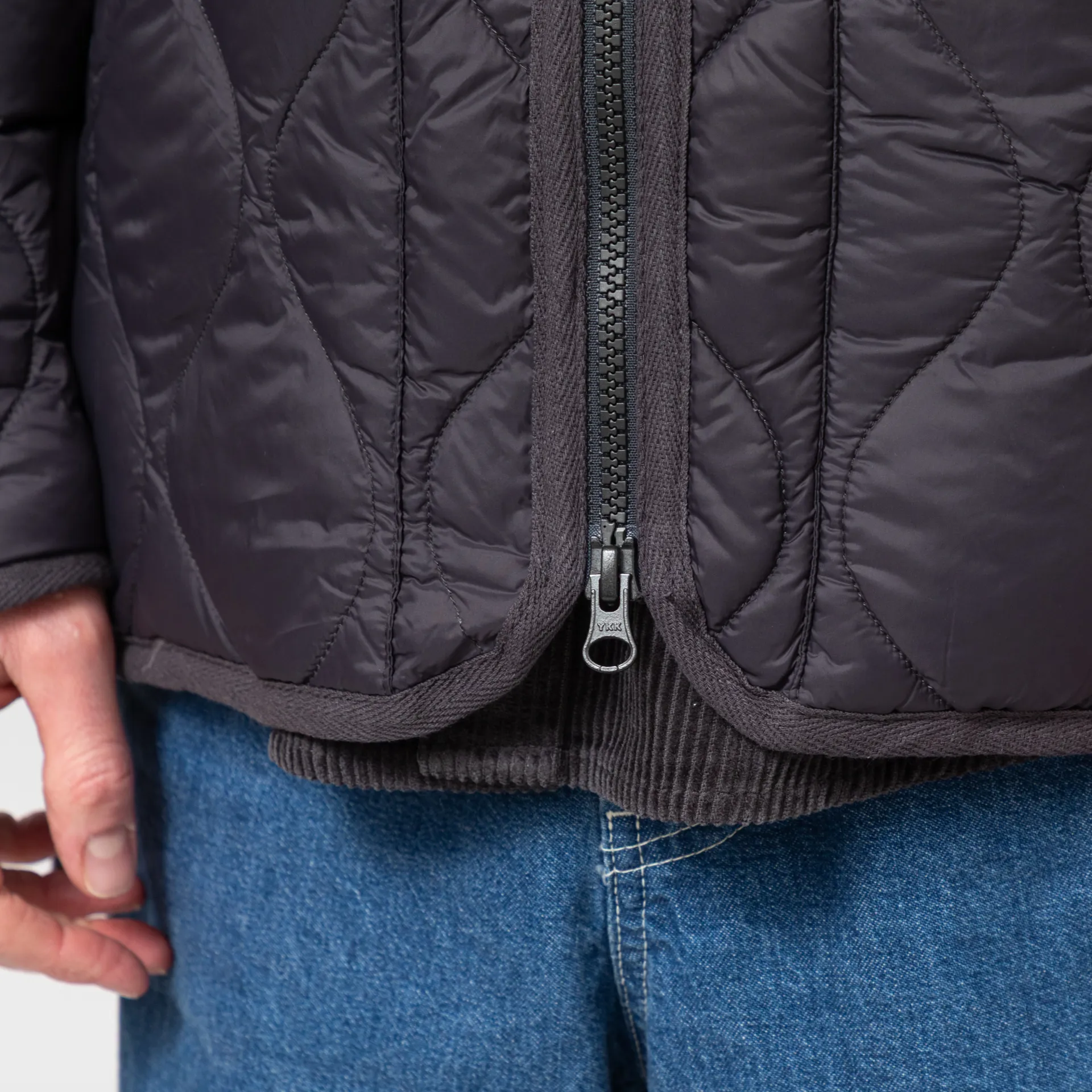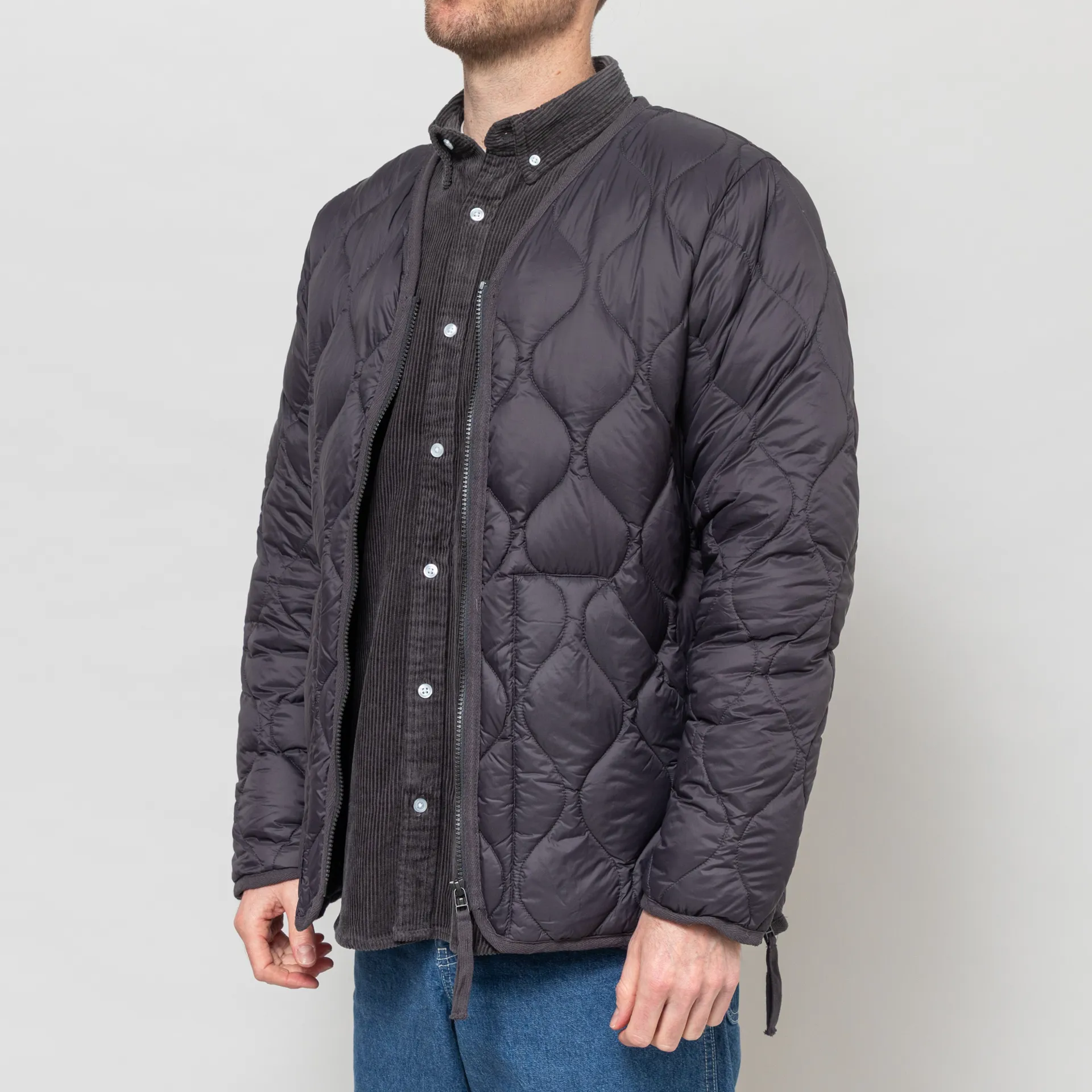 A lightweight, insulated jacket from Taion, constructed from durable quilted nylon with high-quality 800 fill-power white down insulation. It's cut in a slim fit to maximise warmth and features a zip-through front, leading to a classic V-neck, with tonal binding throughout, two side zippers for ventilation and two front pockets.