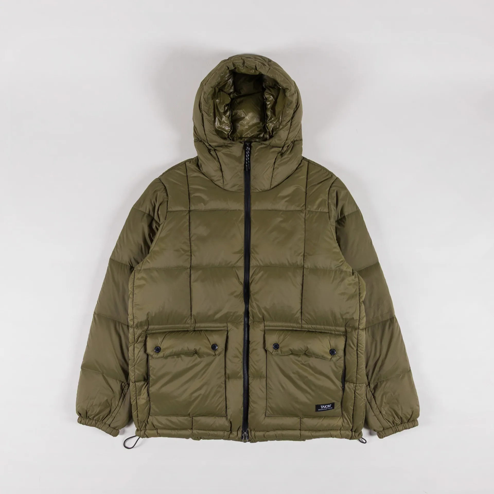 The Mountain Packable Volume Down Hoodie from Taion has been cut in a regular fit for everyday comfort, constructed from 100% nylon shell and lining. It features high-loft 800 fill-power duck down, a lightweight material which can contain a lot of warm air. The jacket has a zip-through front, leading up to a classic hood, with elasticated cuffs, a drawstring hem and a four-pocket design to the front. Finished off with the signature Taion woven logo patch to the hem.