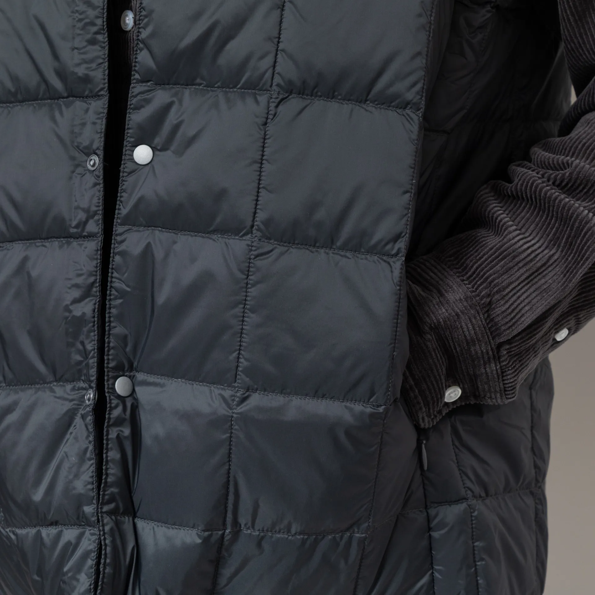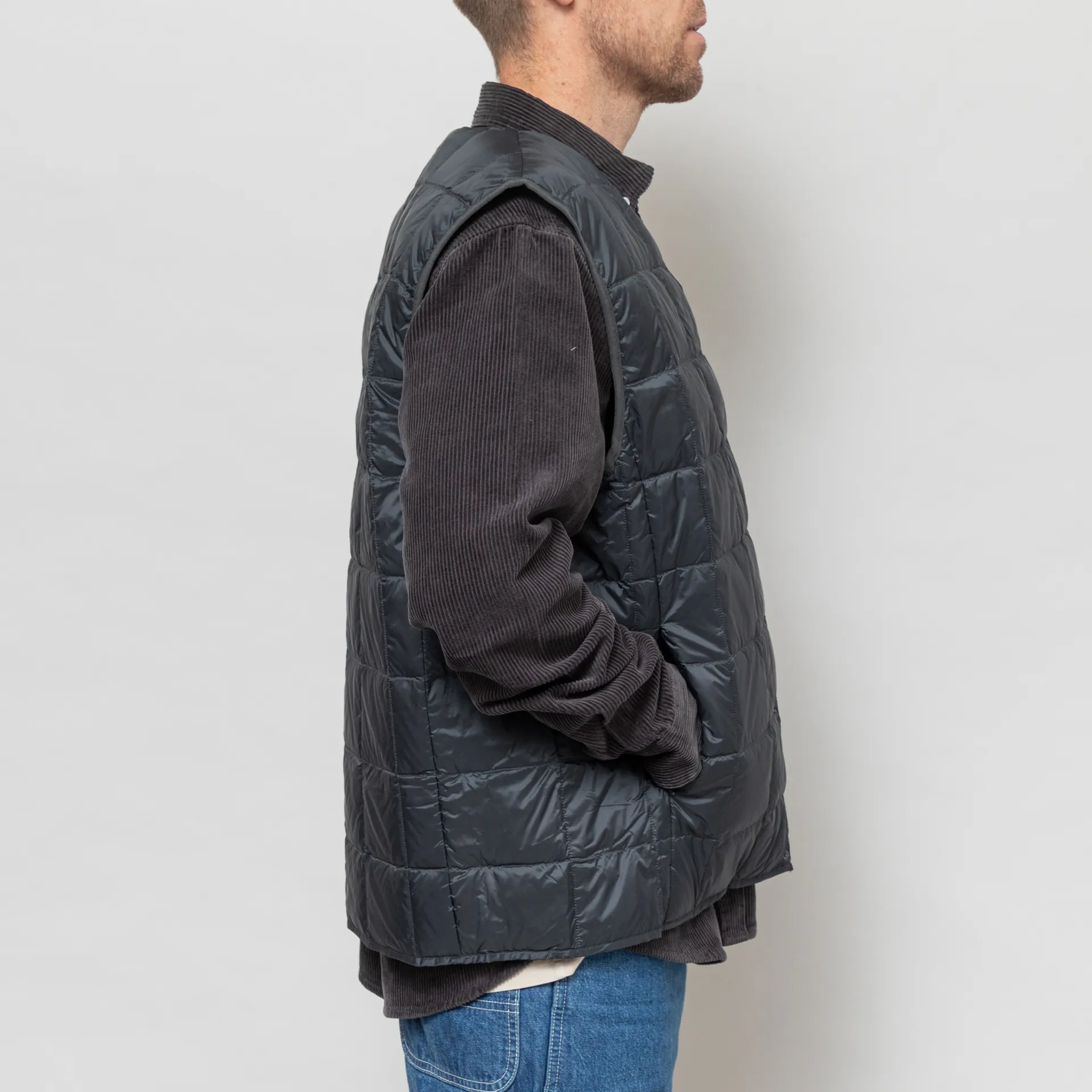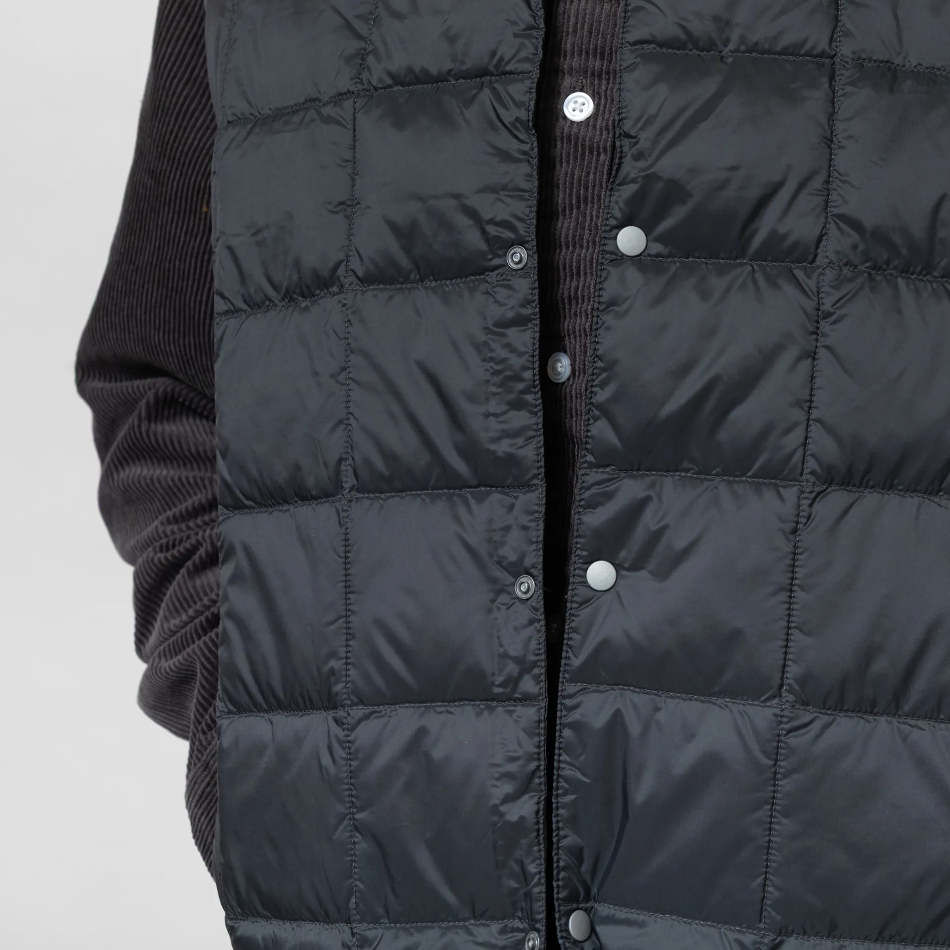 A lightweight, insulated vest from Taion,constructed from durable quilted nylon with high-quality 800 fill-power white down insulation.
