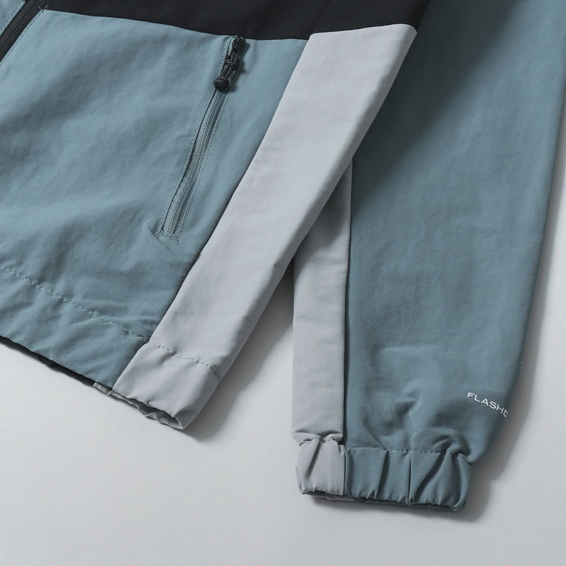 A track jacket from The North Face's Phlego collection, made from a blend of 95% nylon and 5% elastane with FlashDry technology. It has a full-zip front, zippered handwarmer pockets and an elasticated hem and cuffs.