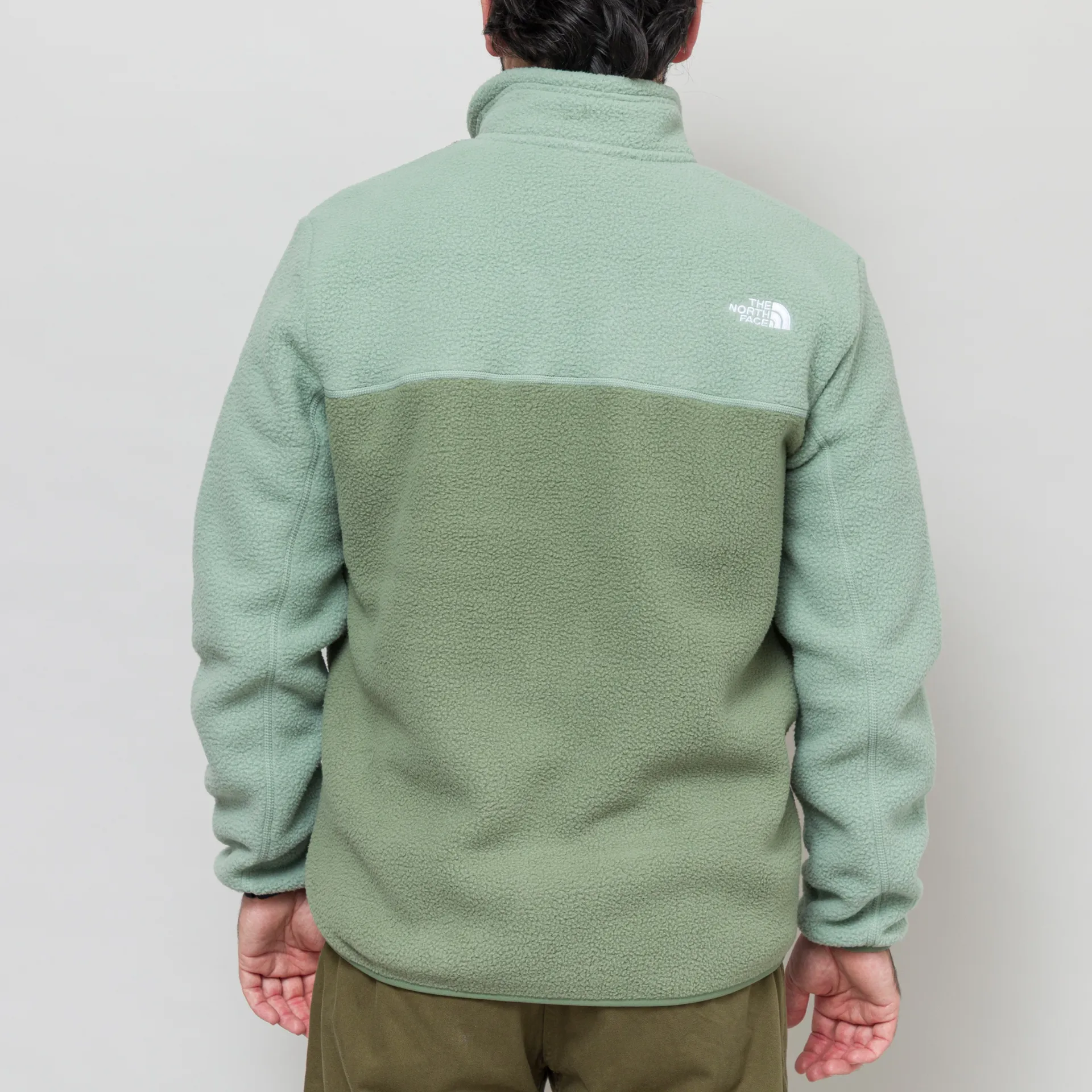 A fleece jacket from The North Face, constructed from soft, midweight polyester pile and is cut in a regular fit for everyday comfort. It features a classic stand collar, stretch binding at the hem and cuffs, with a single pocket to the chest and two hand pockets. Finished with an embroidered TNF logo to the chest and back.