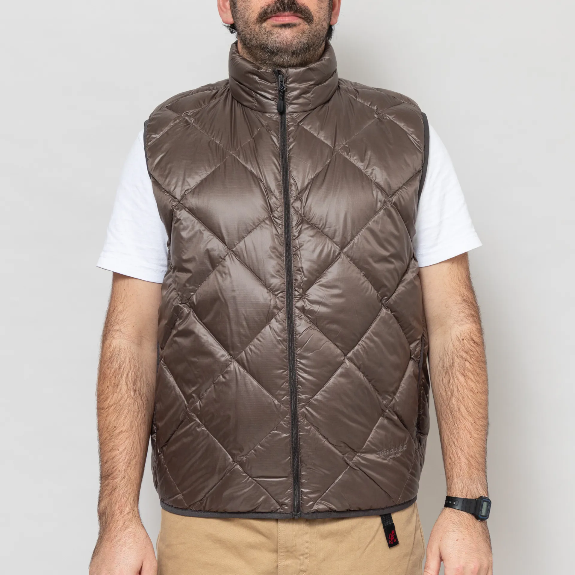 An insulated vest from thisisneverthat, constructed with PERTEX QUANTUMtechnology, a super-light, windproof and water resistant insulation.