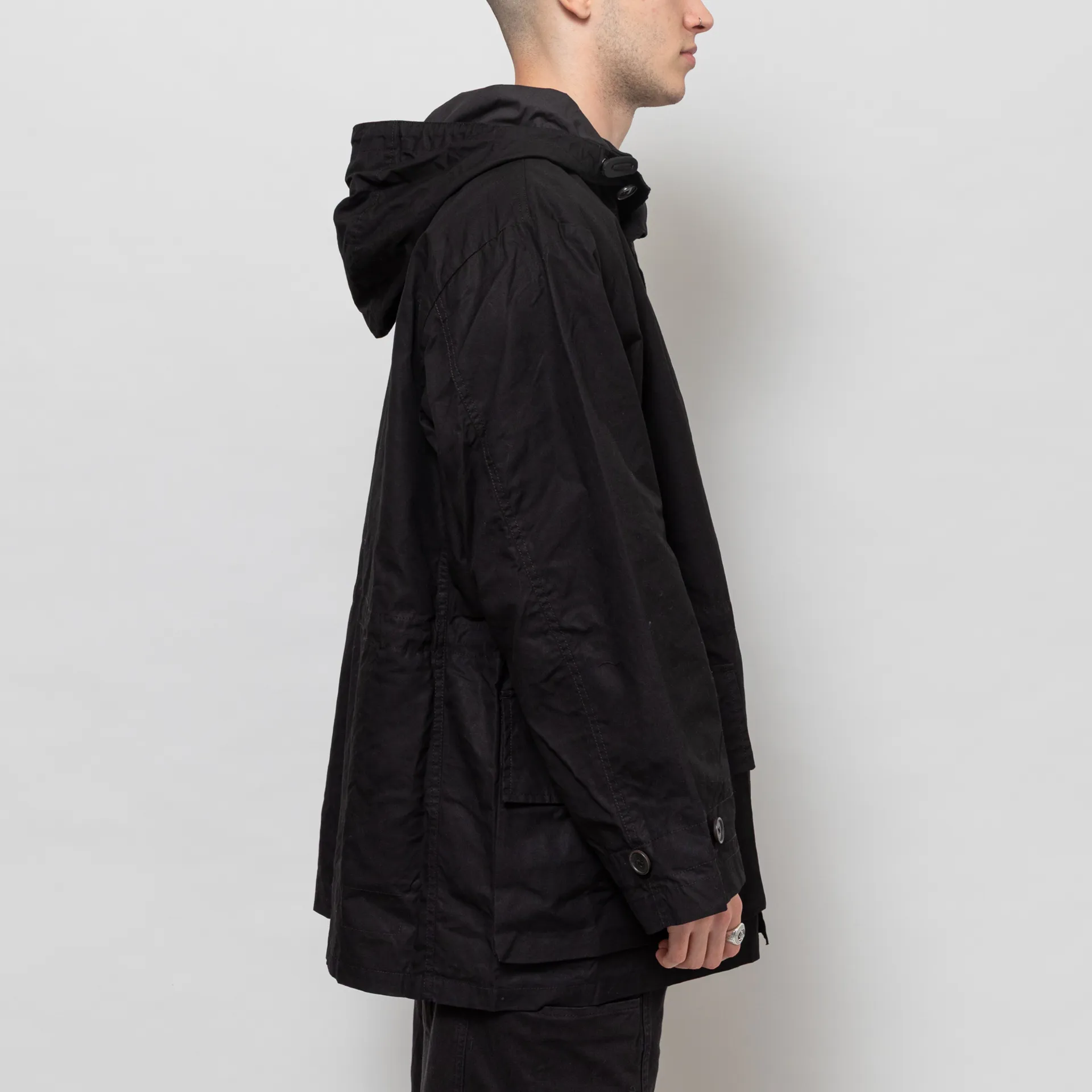 Universal Works Boston Parka Black Scottish Wax Cotton