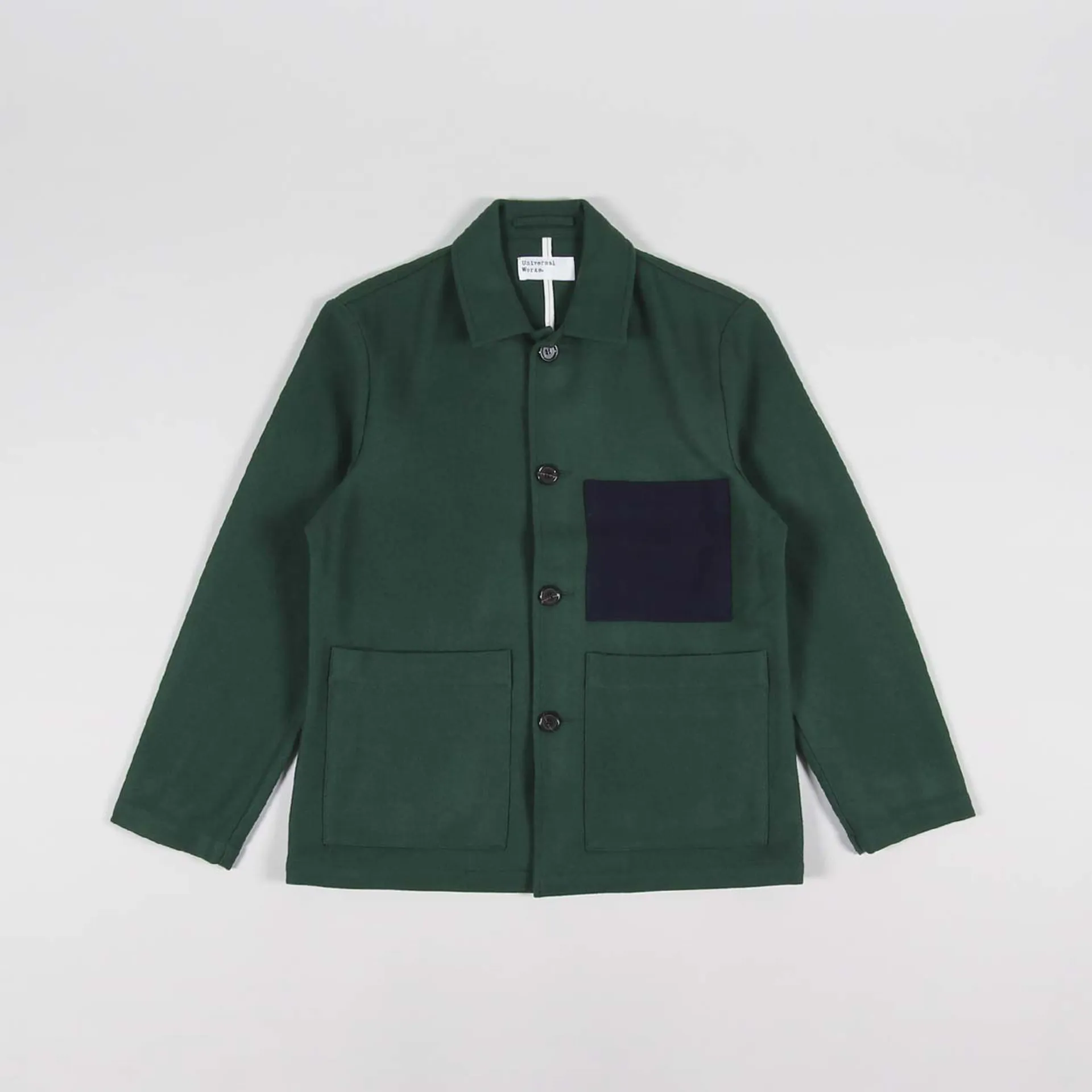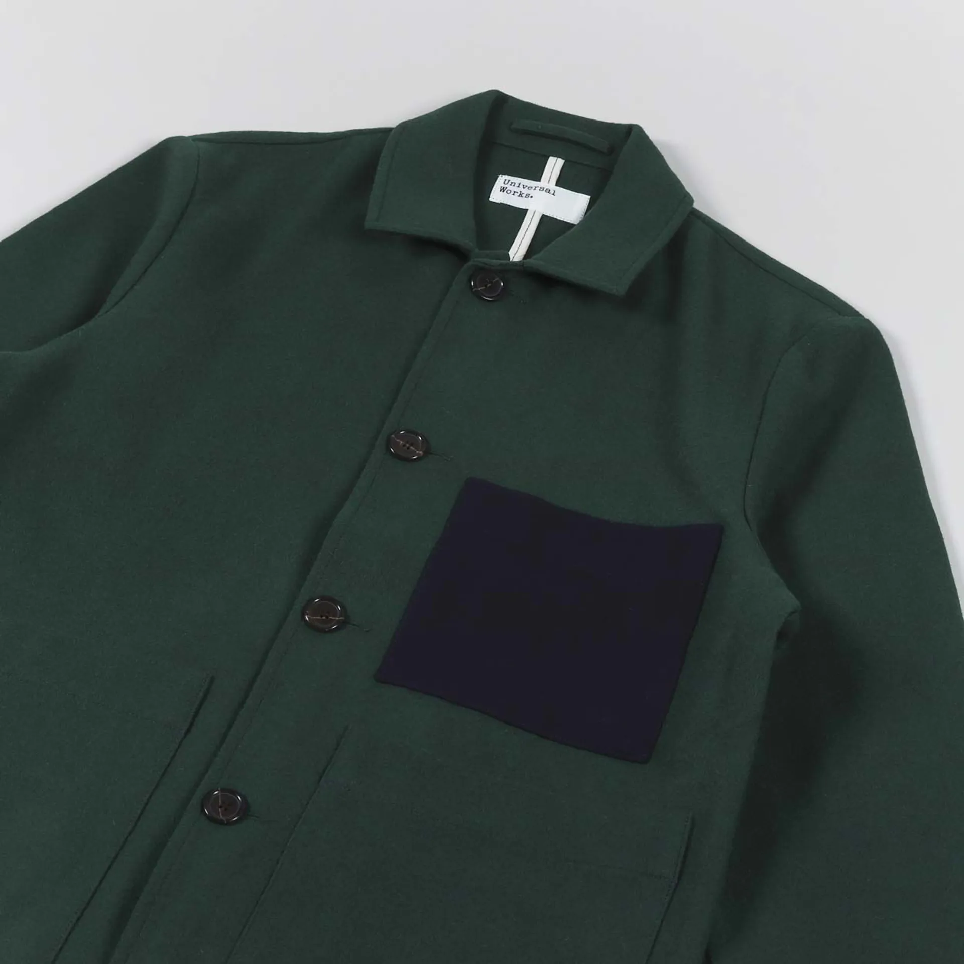 Universal Works Simple Bakers Jacket Forest Green Melton