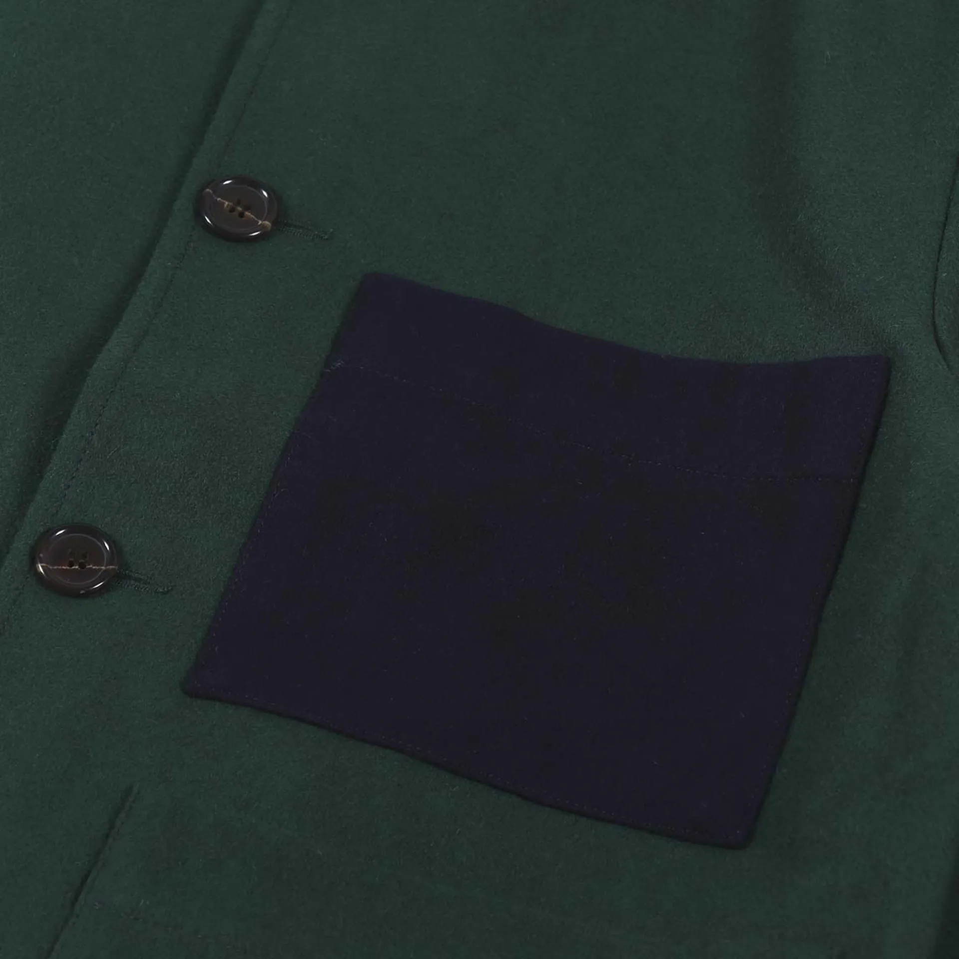 A warm winter version of Universal Works' iconic Bakers Jacket, made from a blend of 80% wool and 20% polyamide in a Melton fabric. It has a buttoned front and three patch pockets, with the chest having a contrast colour.