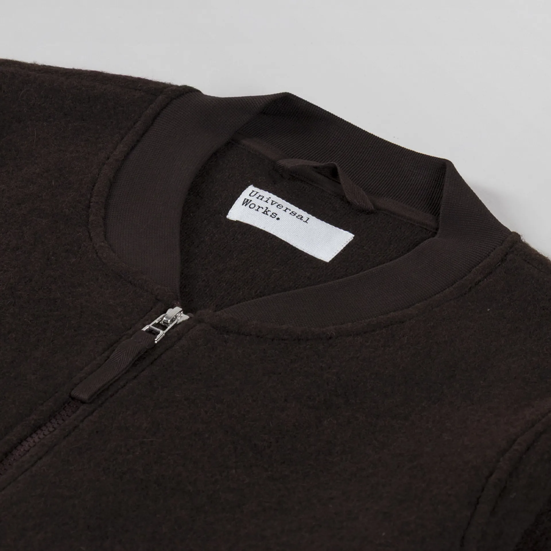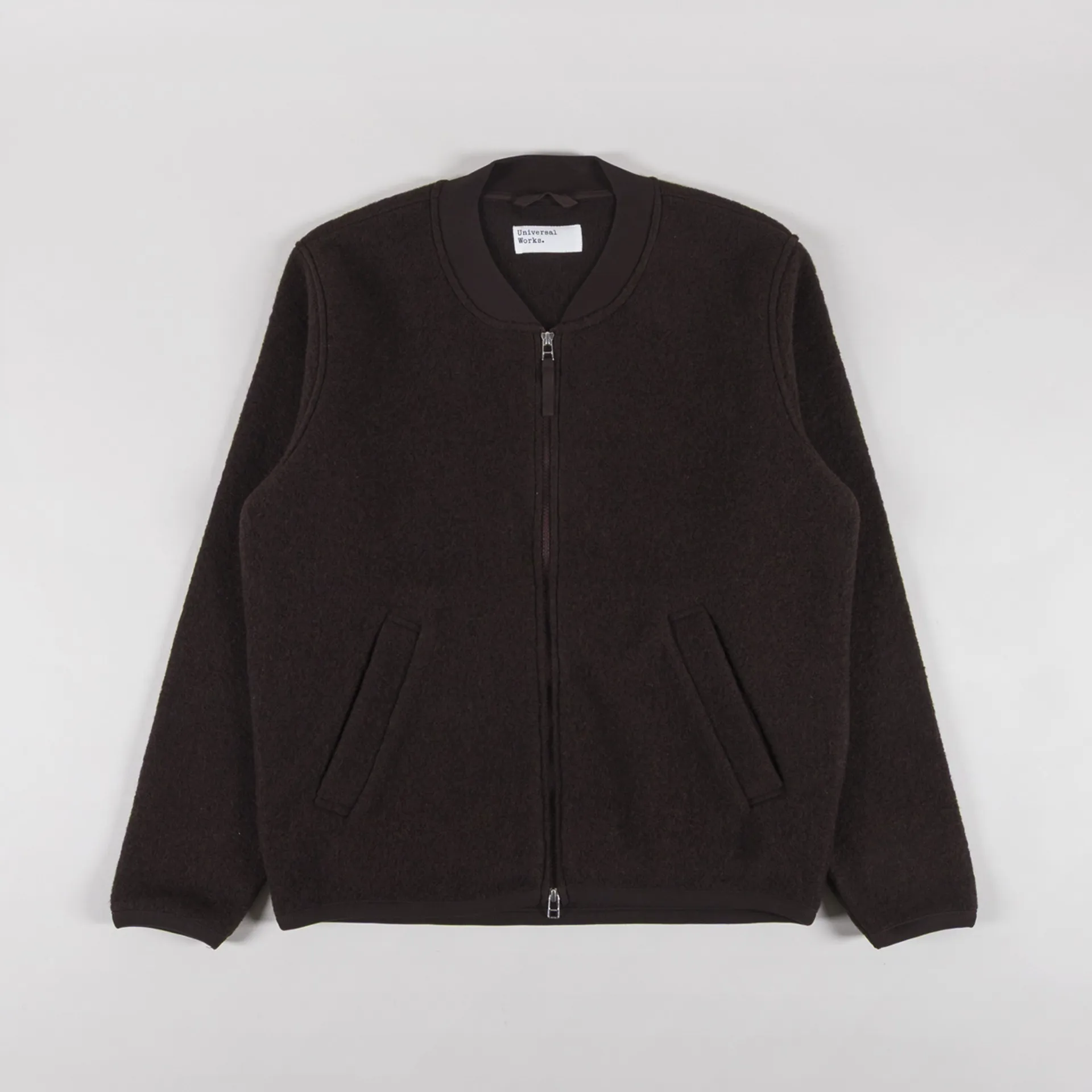 Universal Works Zip Bomber Jacket Brown Wool Fleece