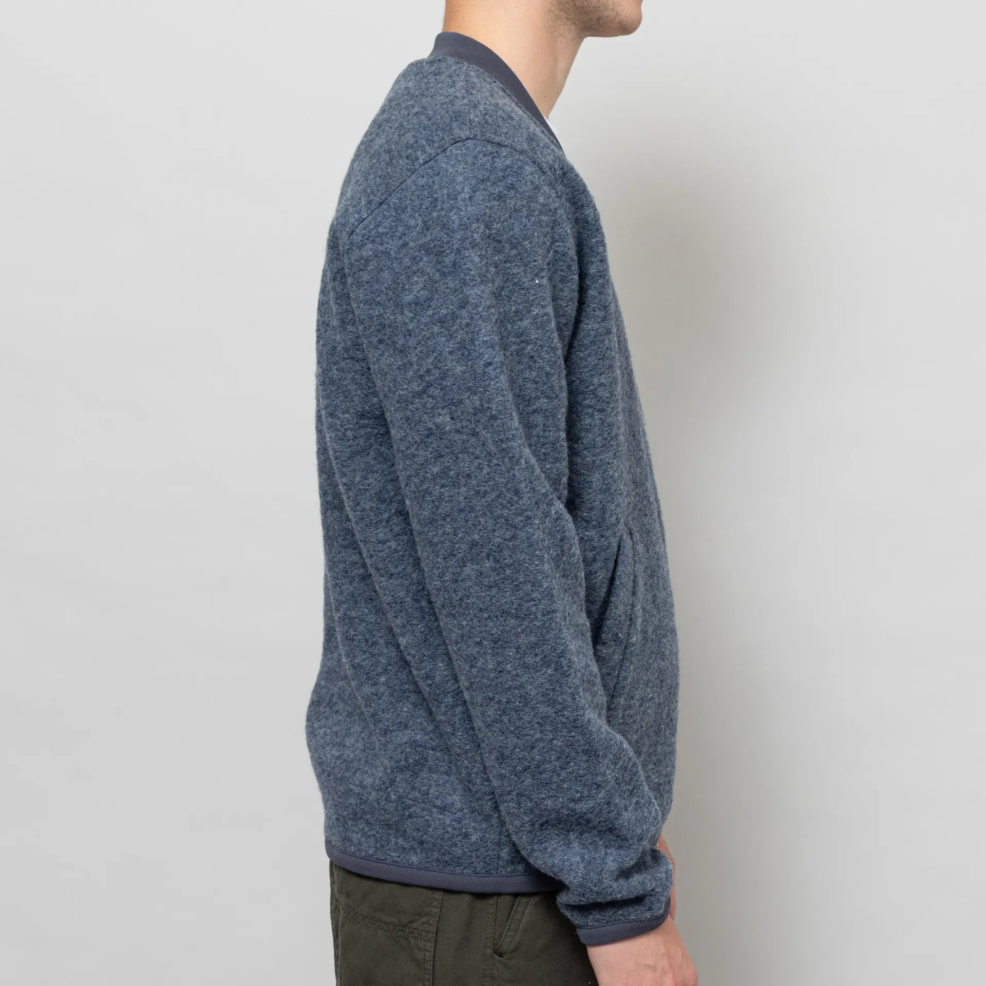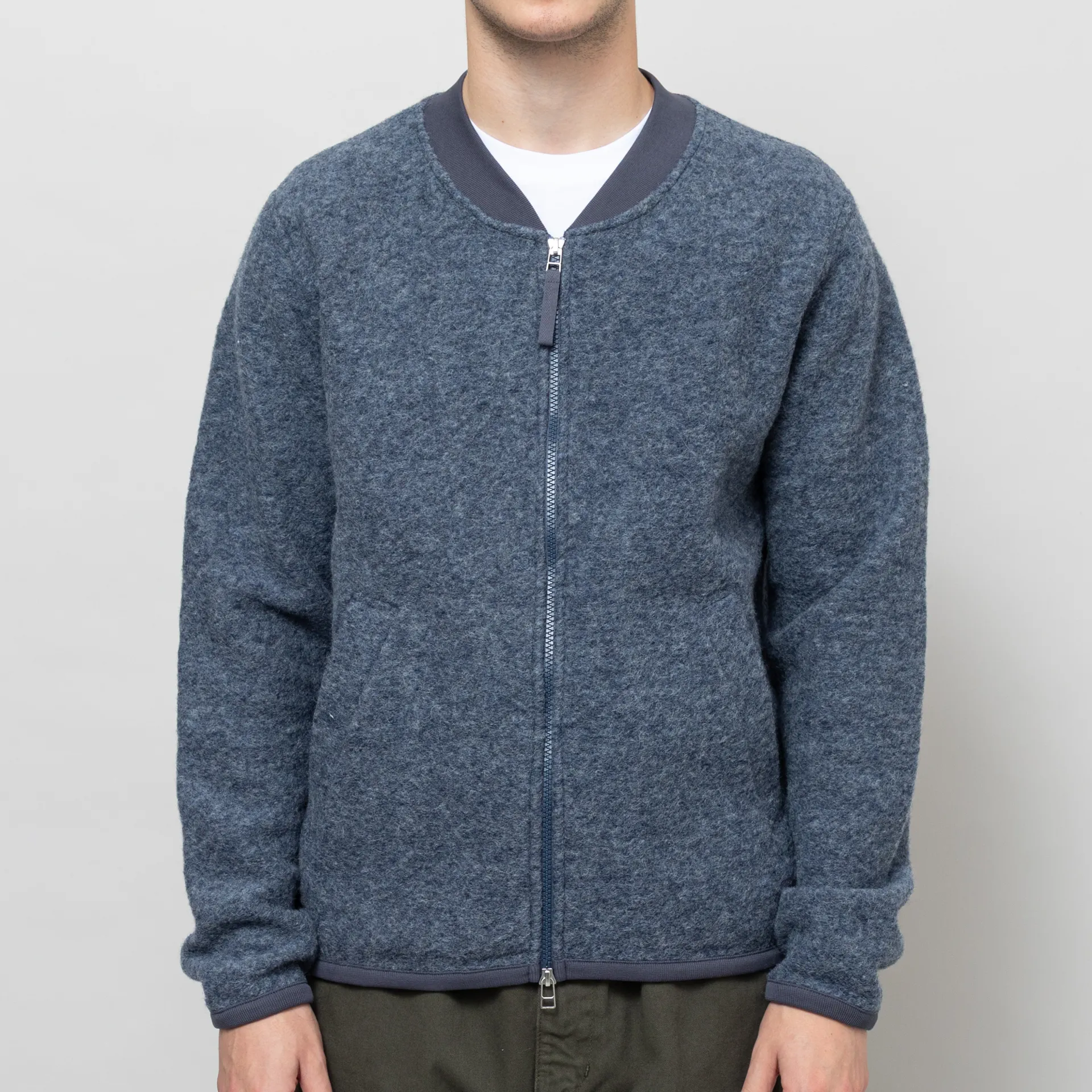 Universal Works Zip Bomber Jacket Slate Blue Wool Fleece