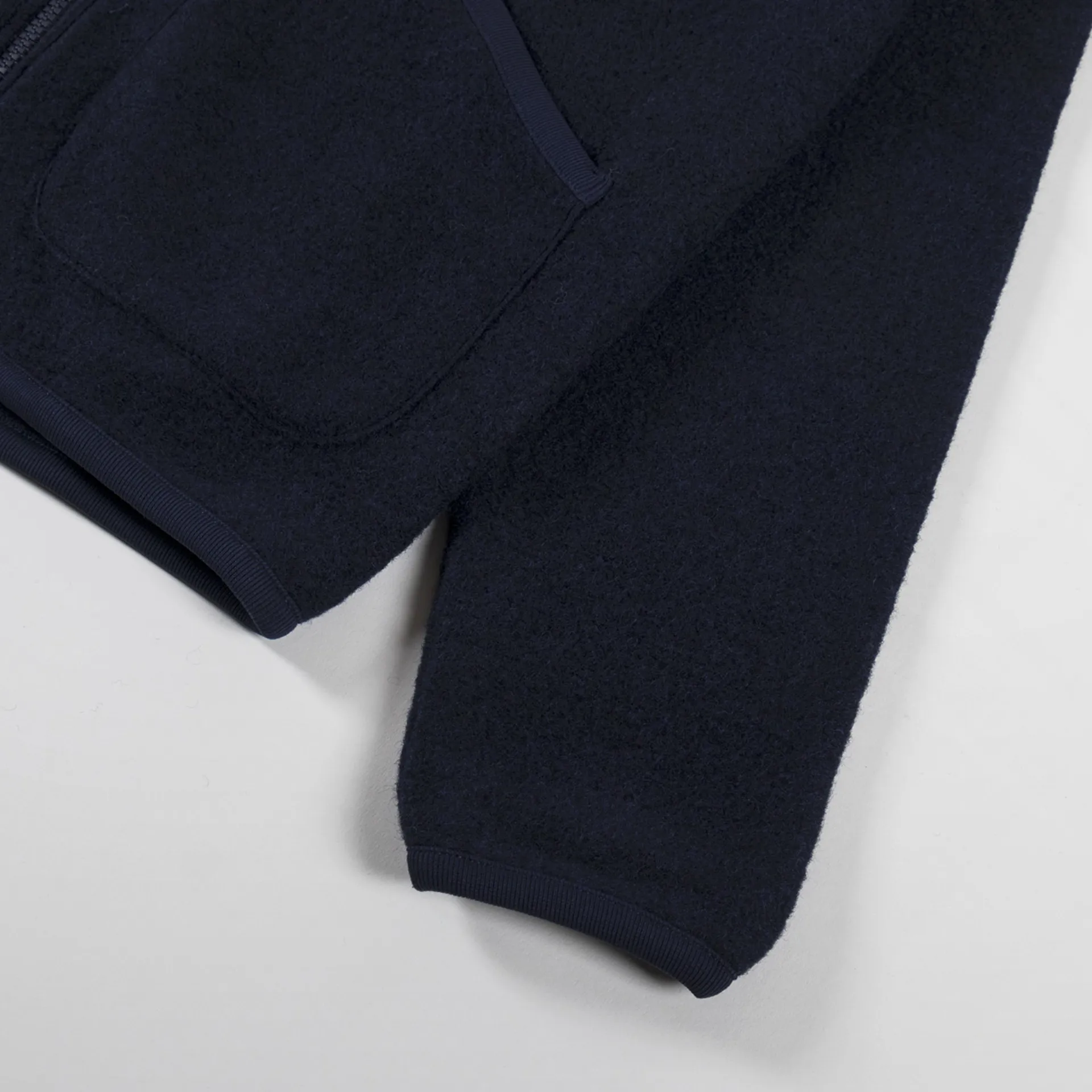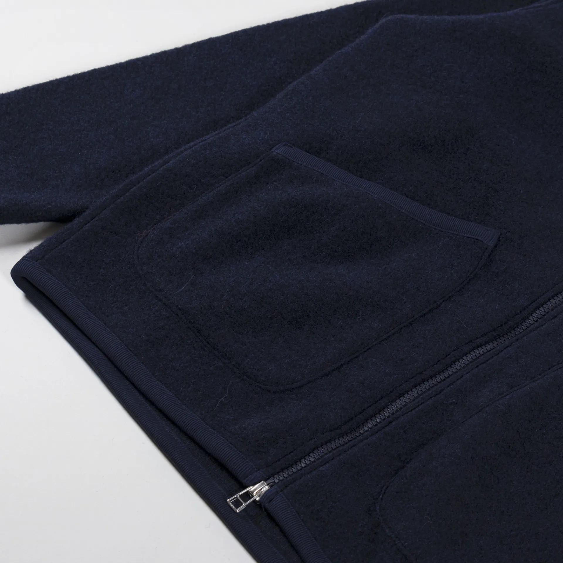 The Zip Bomber from Universal Works has been cut in a regular fit for everyday comfort,crafted from a wool-based fleece that wears hard, with a soft enough structure for everyday wear