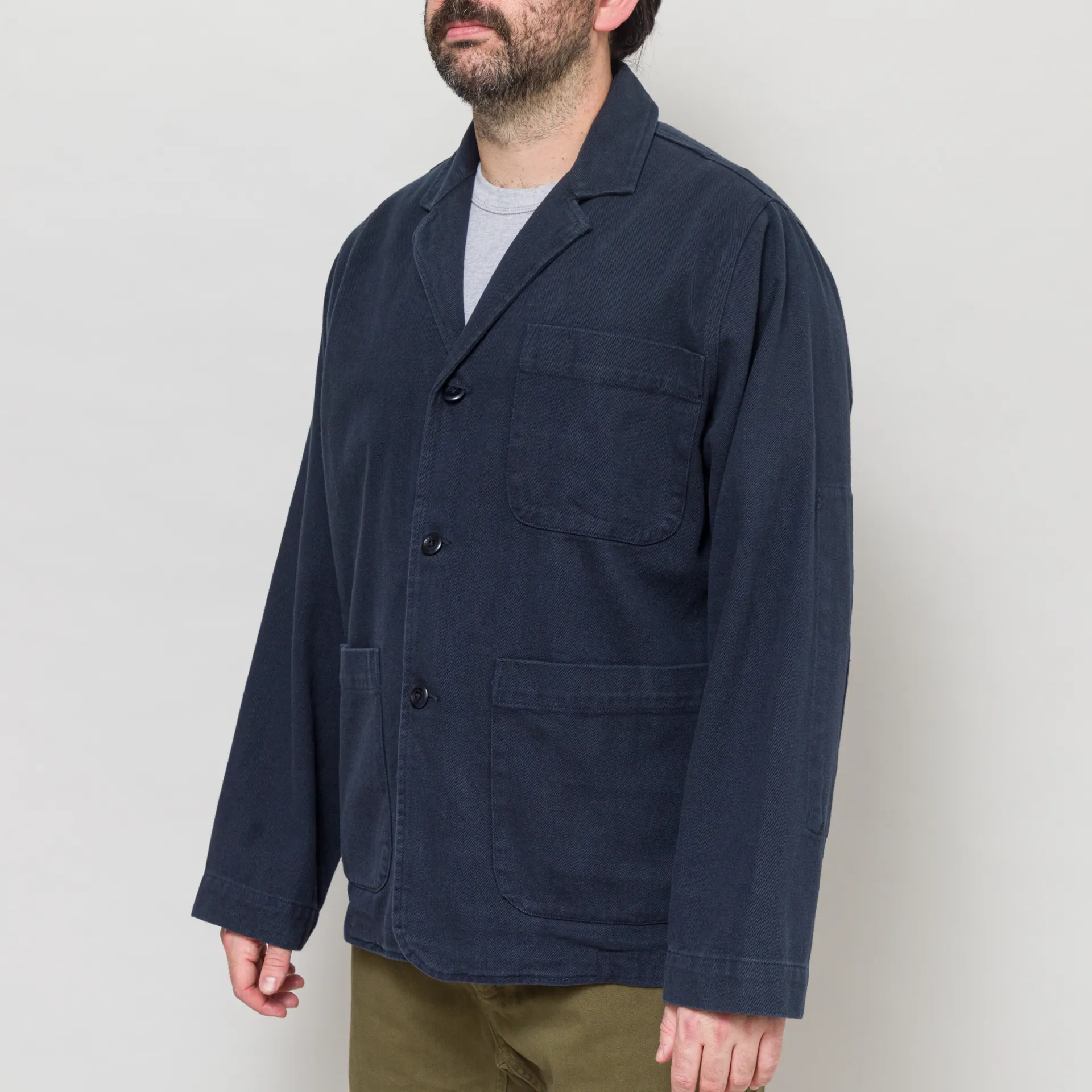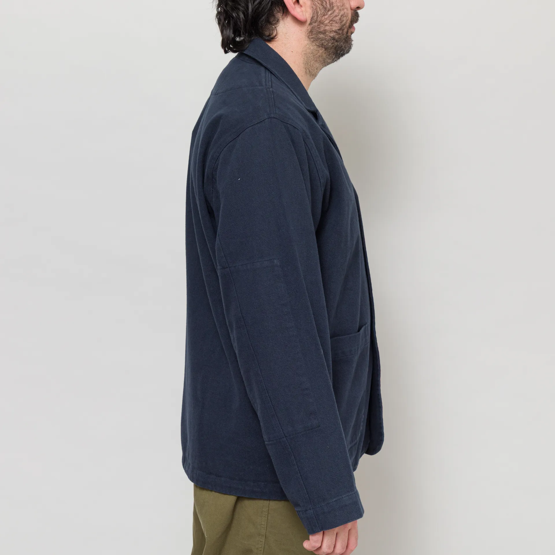 An overshirt inspired blazer from Uskees, constructed from organic cotton drill with reinforced elbows for extra strength and durability.