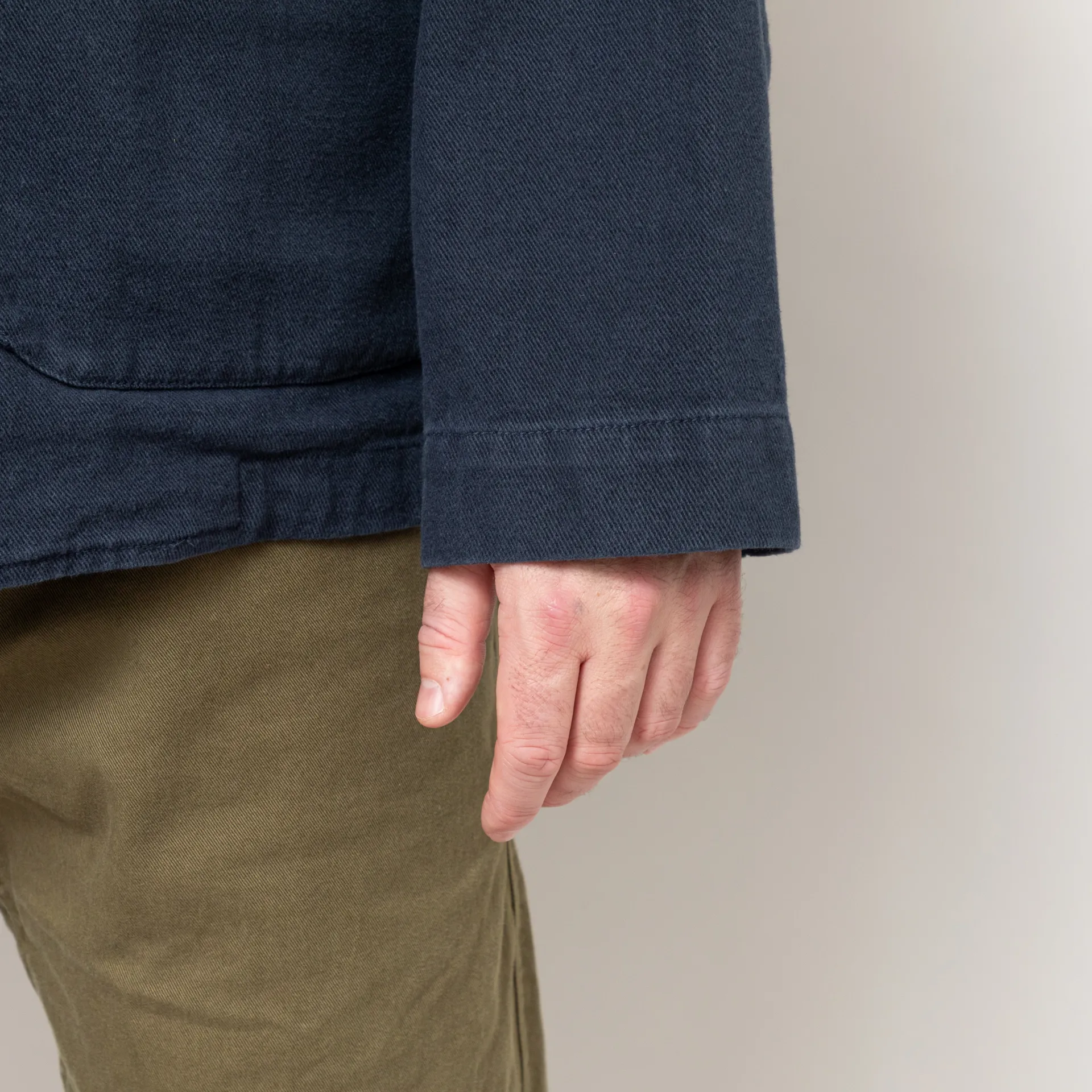 An overshirt inspired blazer from Uskees, constructed from organic cotton drill with reinforced elbows for extra strength and durability. Cut in a relaxed fit for a casual silhouette, it features a button-through front that leads up to a classic spread collar, with buttoned cuffs and a curved hem. Finished with three large patch pockets across the front.