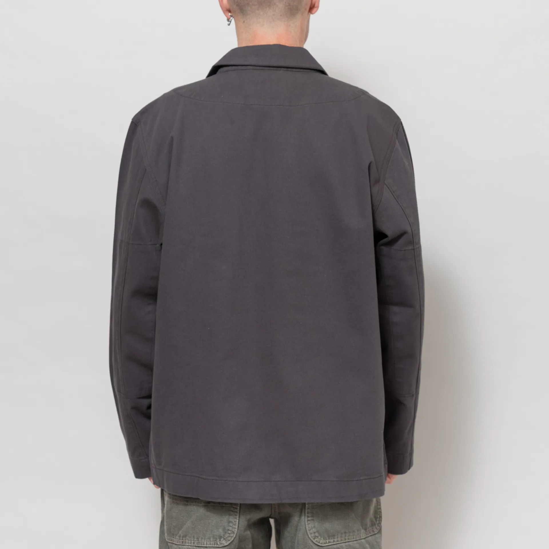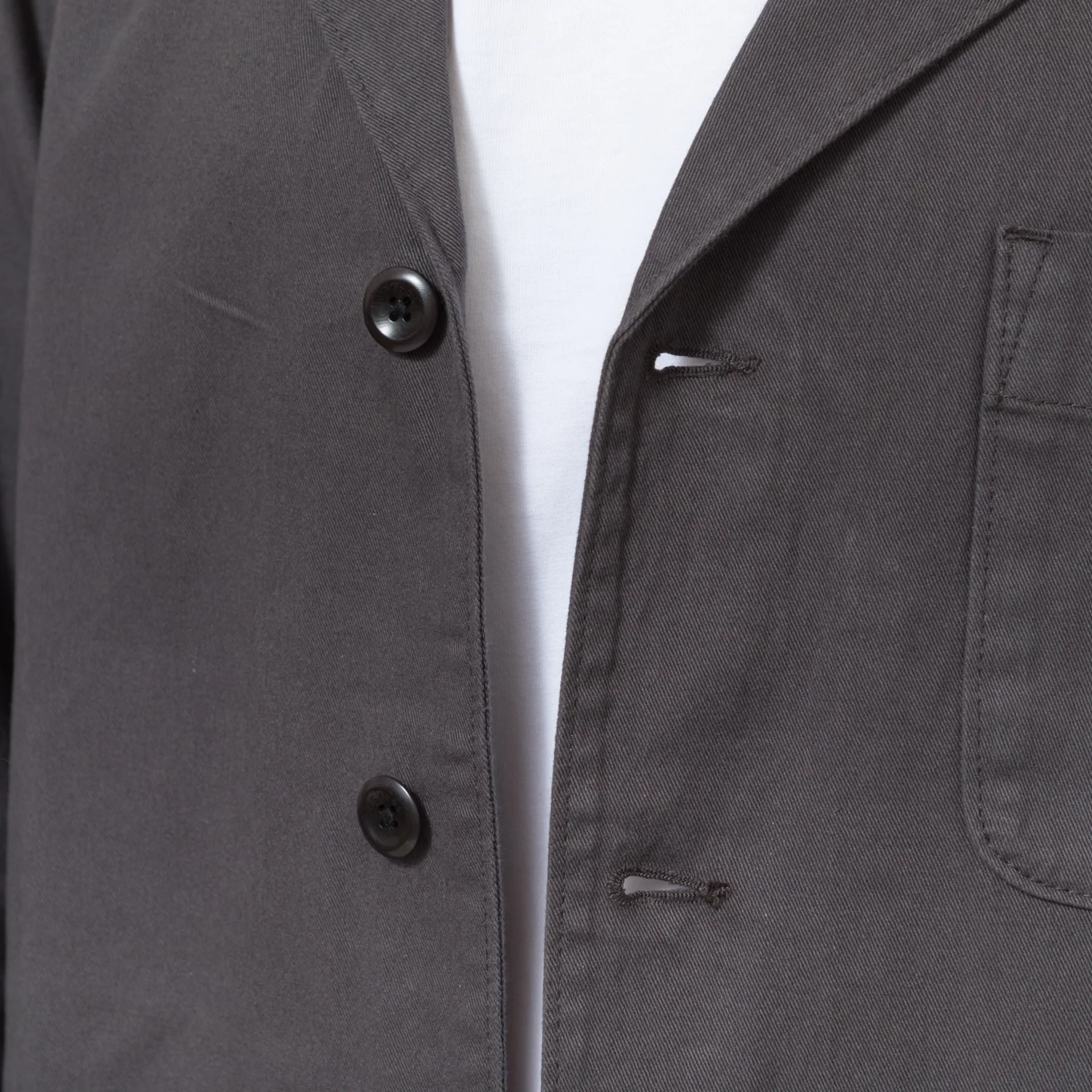 An overshirt-inspired blazer from Uskees, constructed from organic cotton twill with reinforced elbows for extra strength and durability.