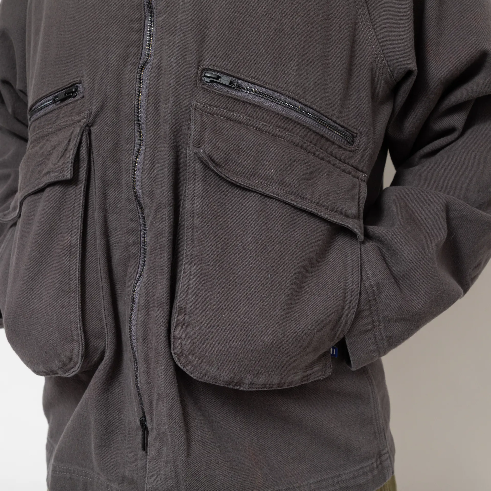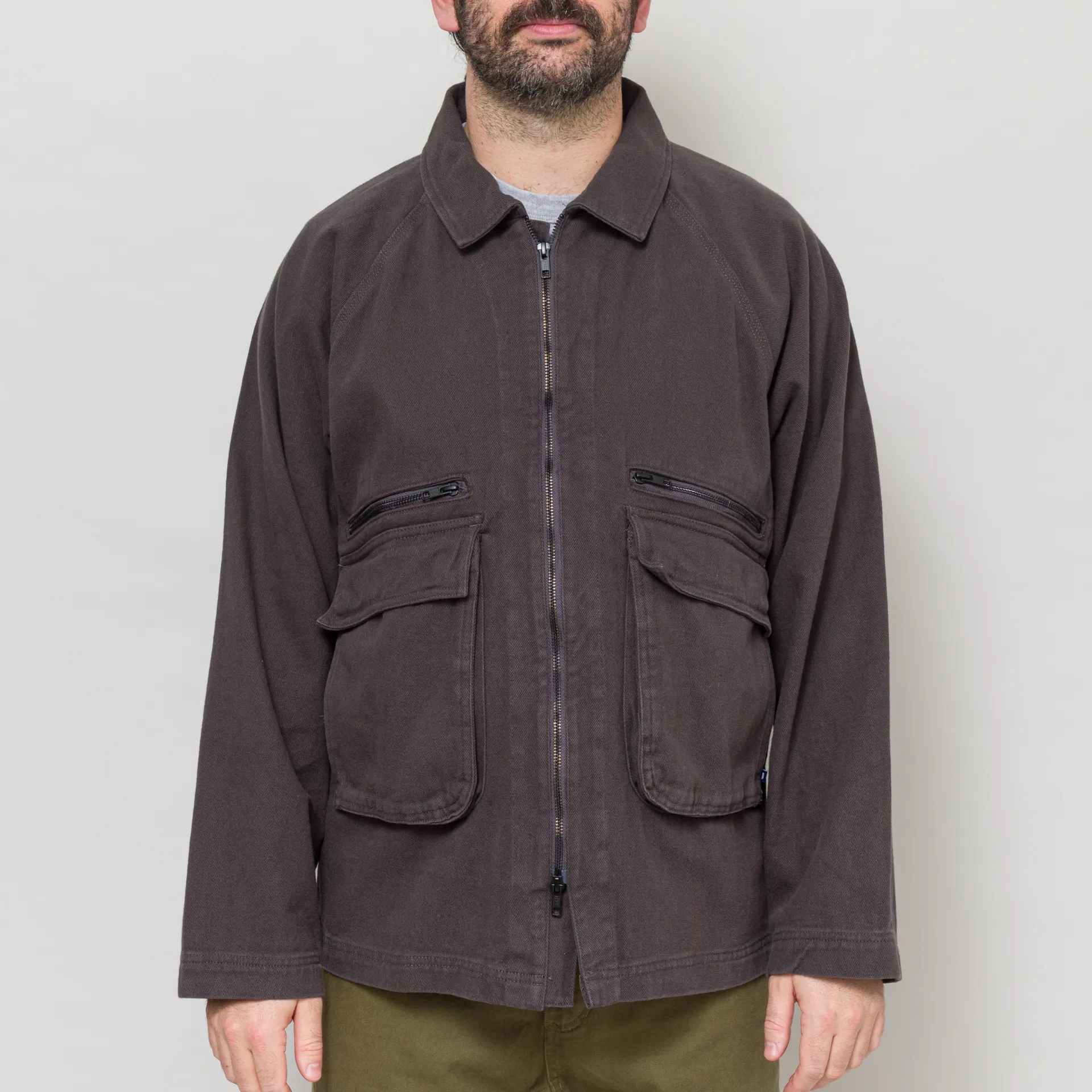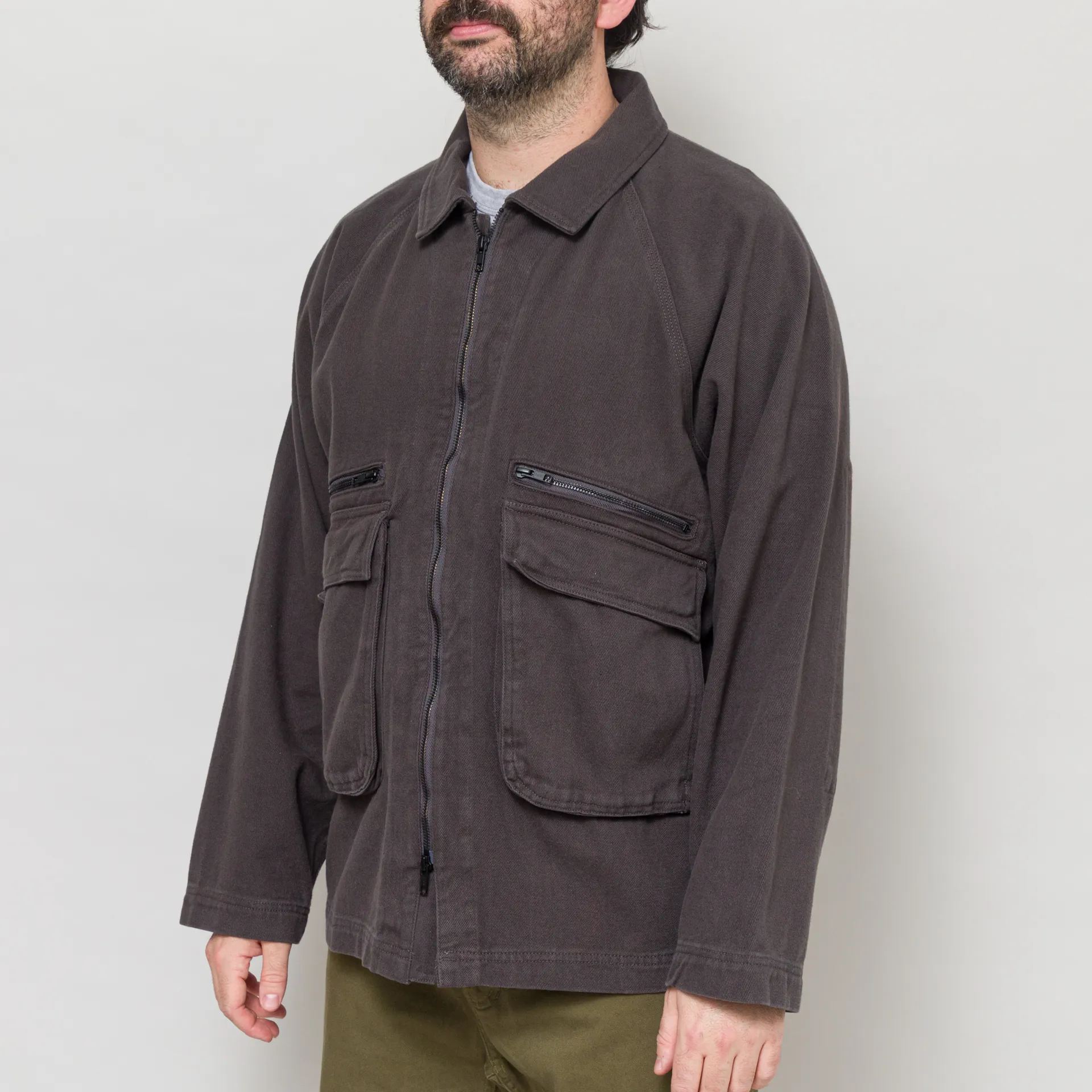 A military style jacket from Uskees, constructed from heavyweight, reinforced cotton drill fabric. Its cut in a relaxed fit for a casual silhouette and features a full-zip through front leading to a classic collar. With raglan sleeves for freedom of movement, guesseted chest pockets with flaps, side-entry pockets and two zipped chest pockets. Finished with a small Uskees flag label.