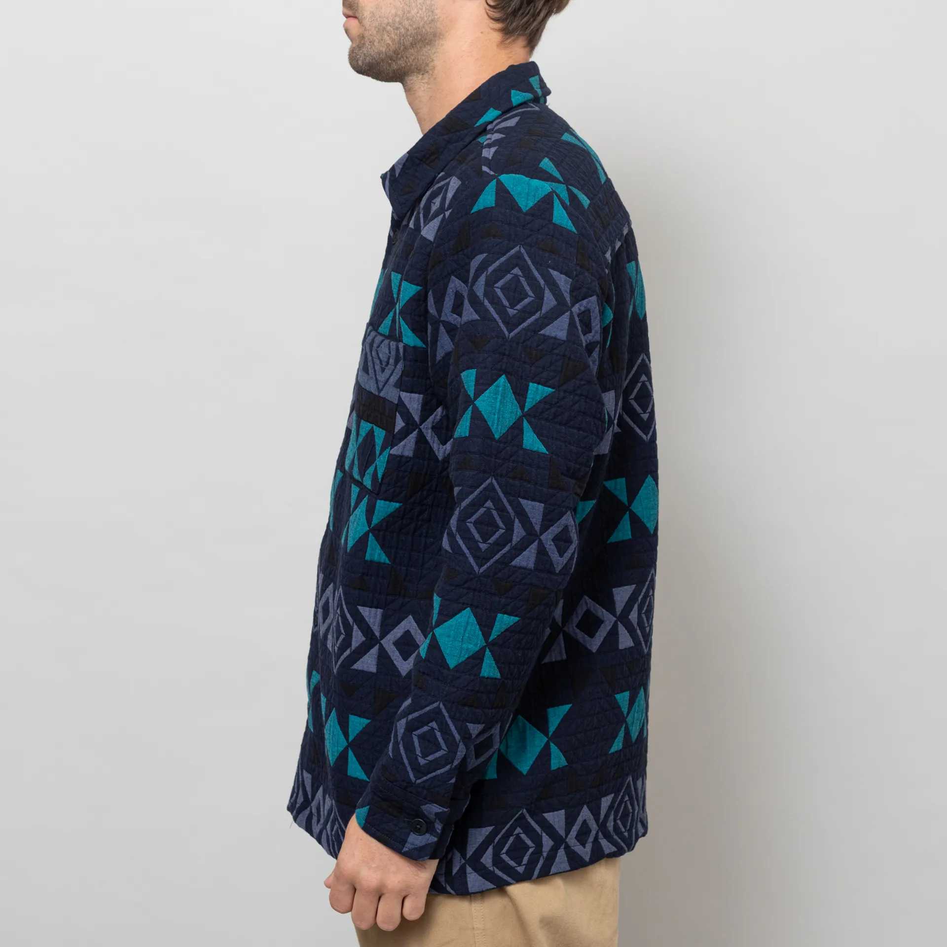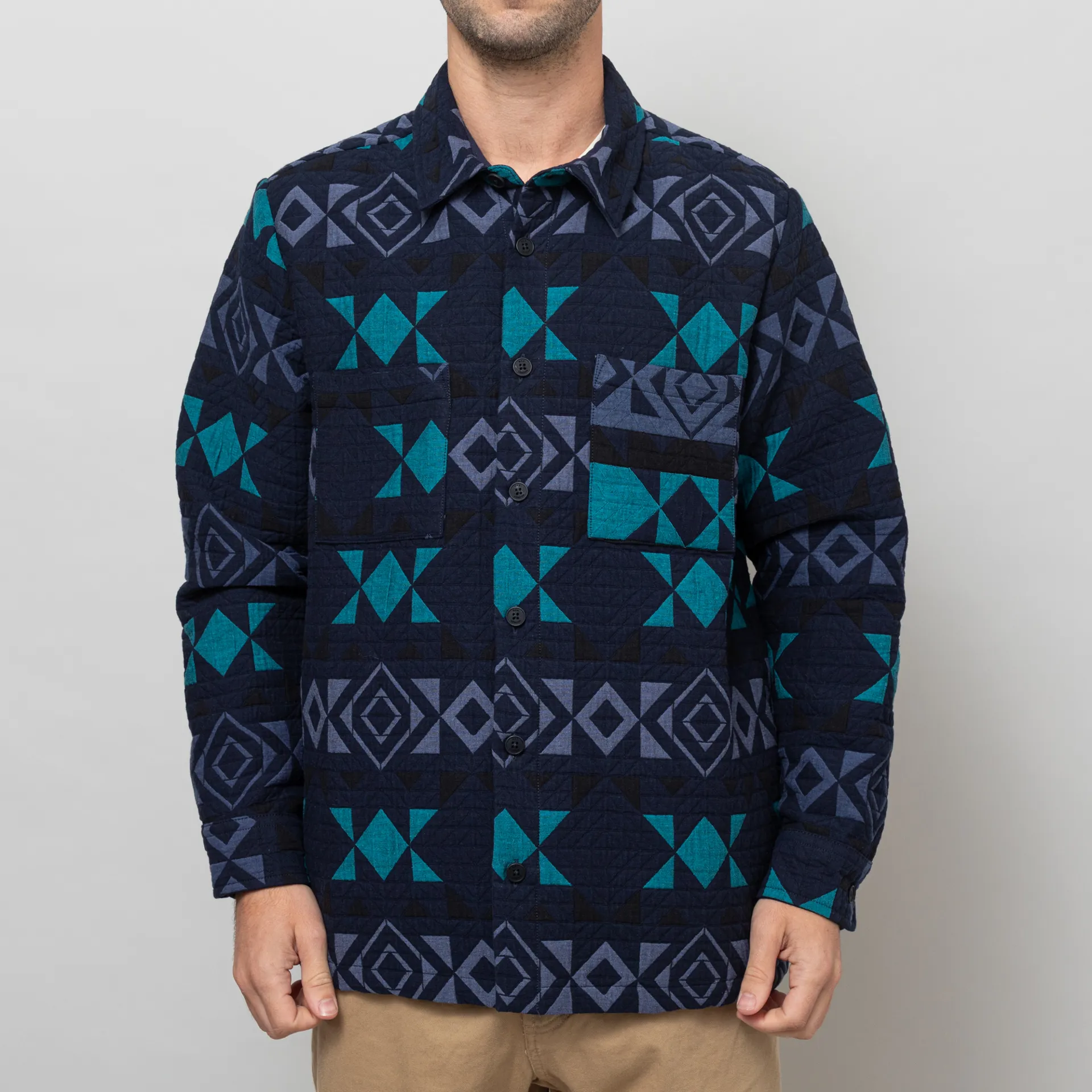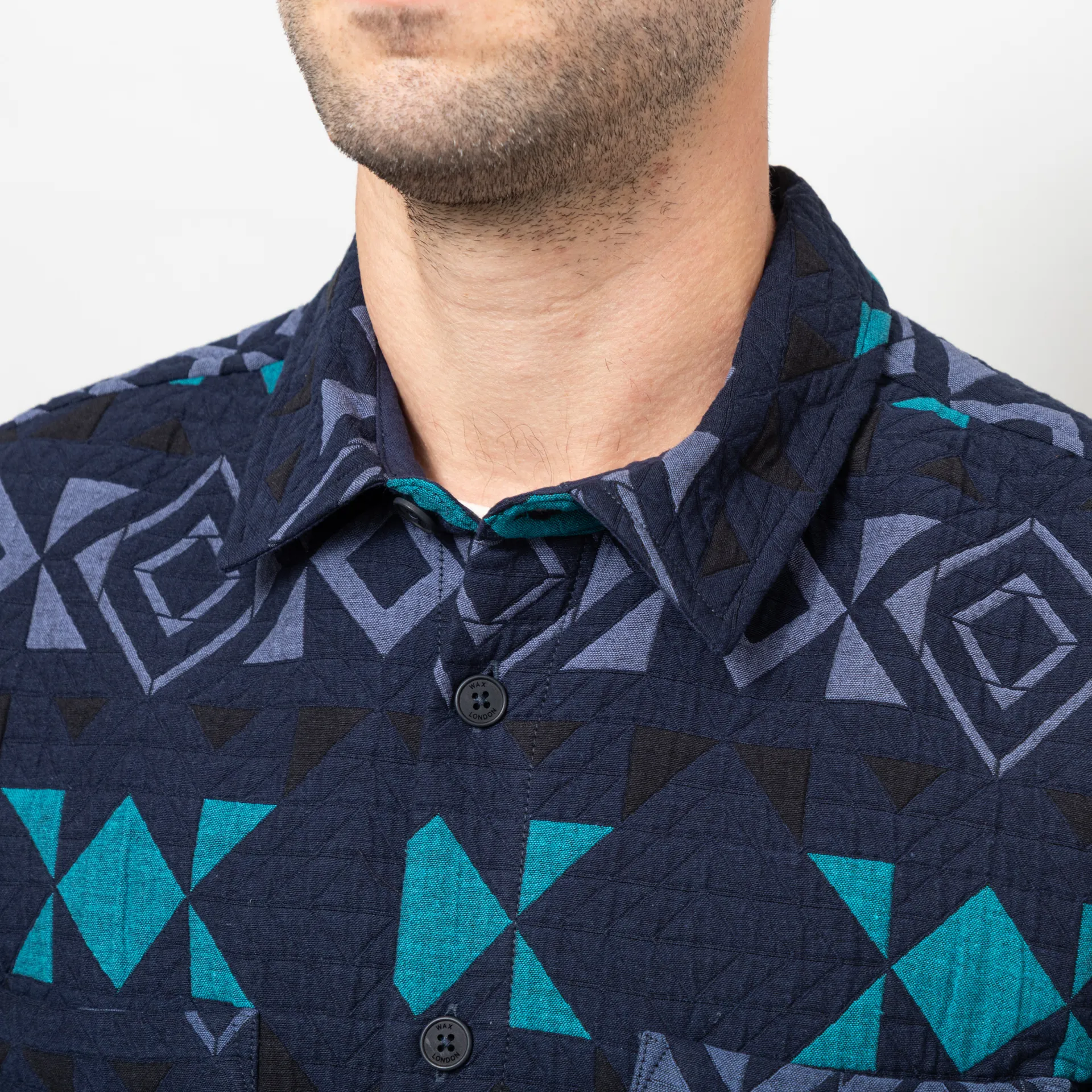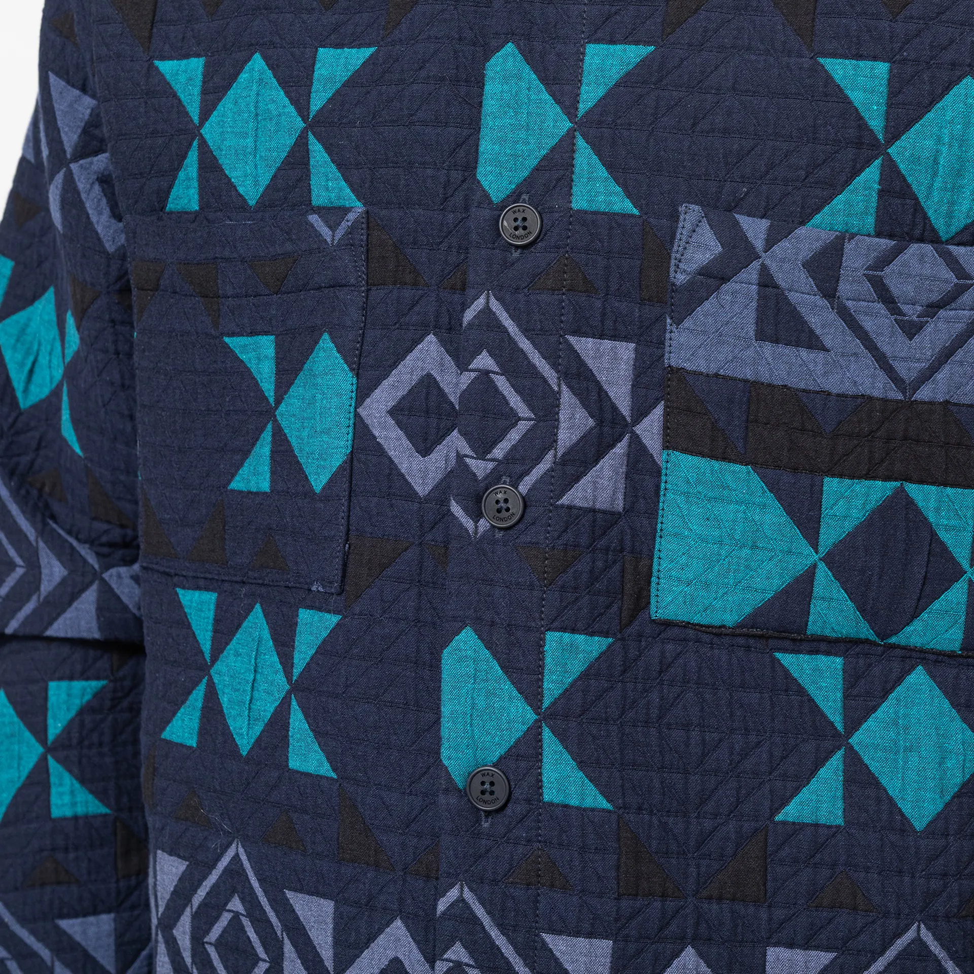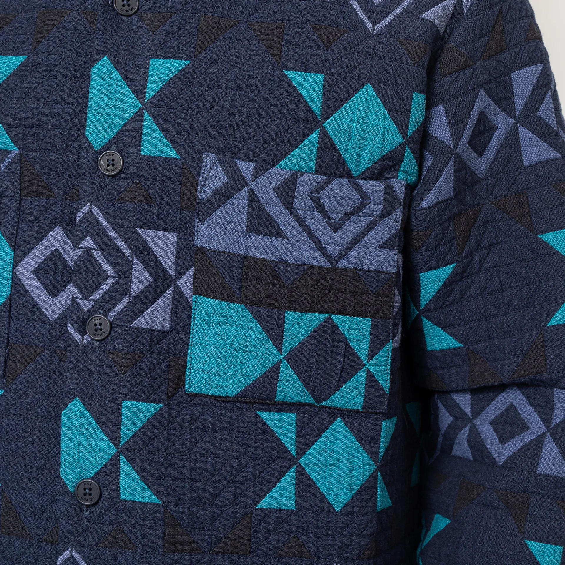 Wax London Otto Blanket Quilted Overshirt Navy Teal