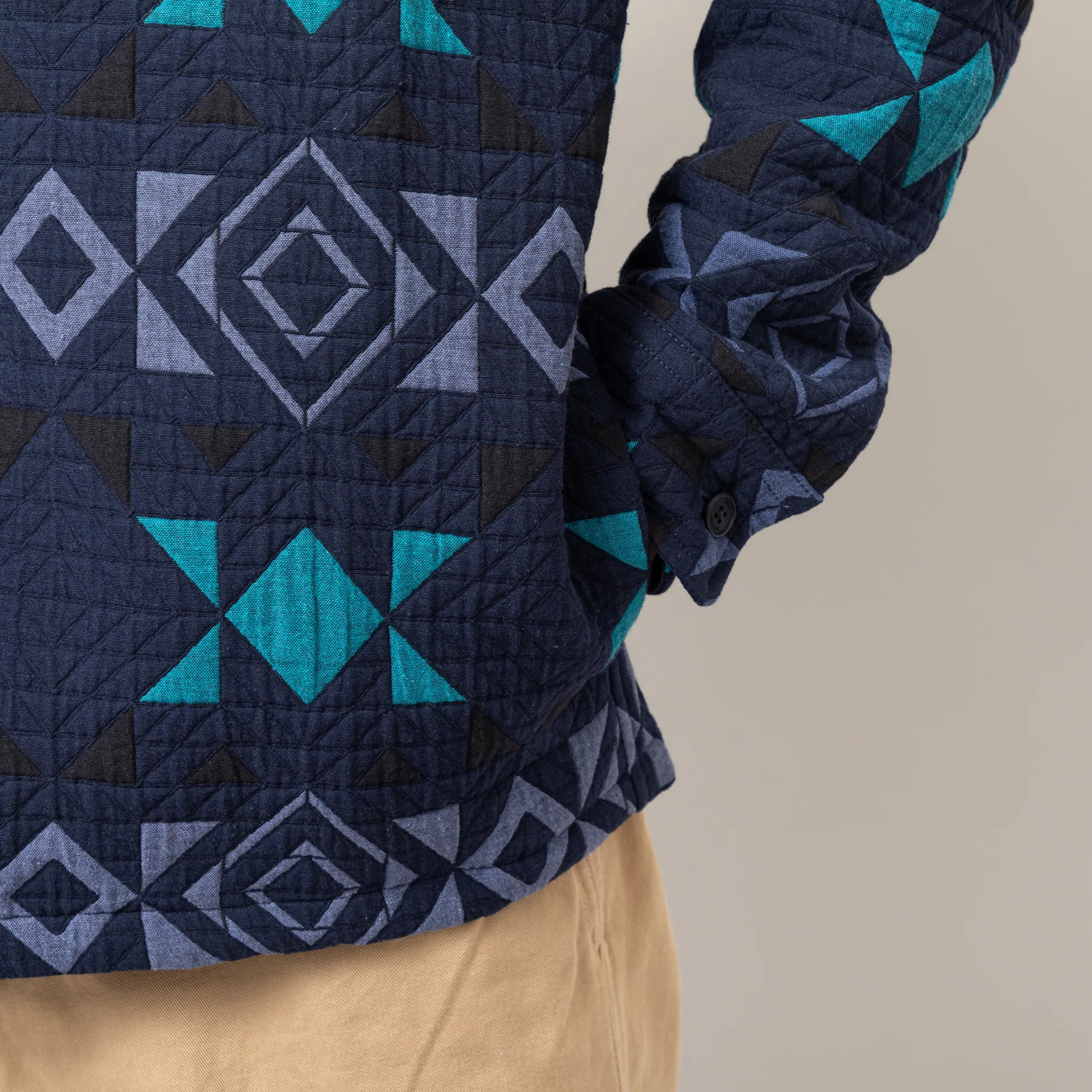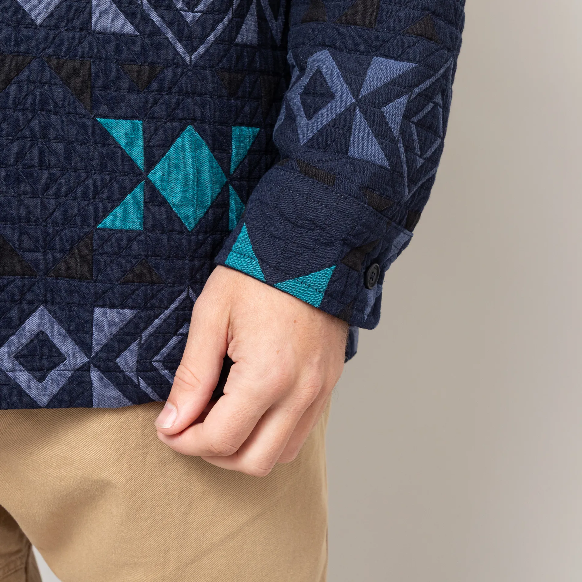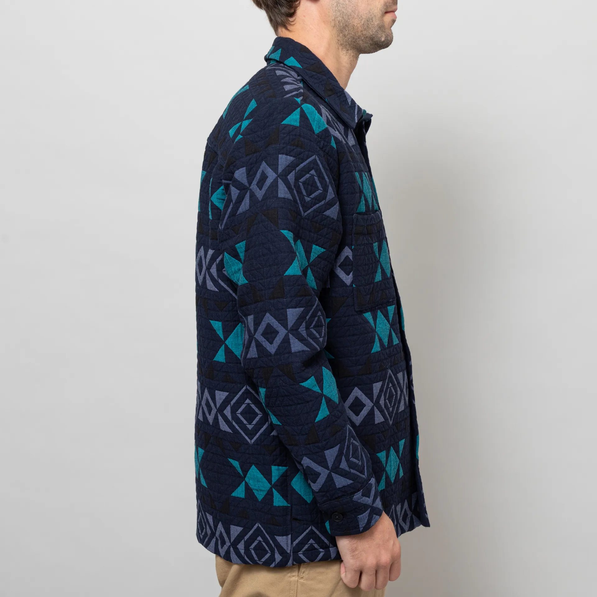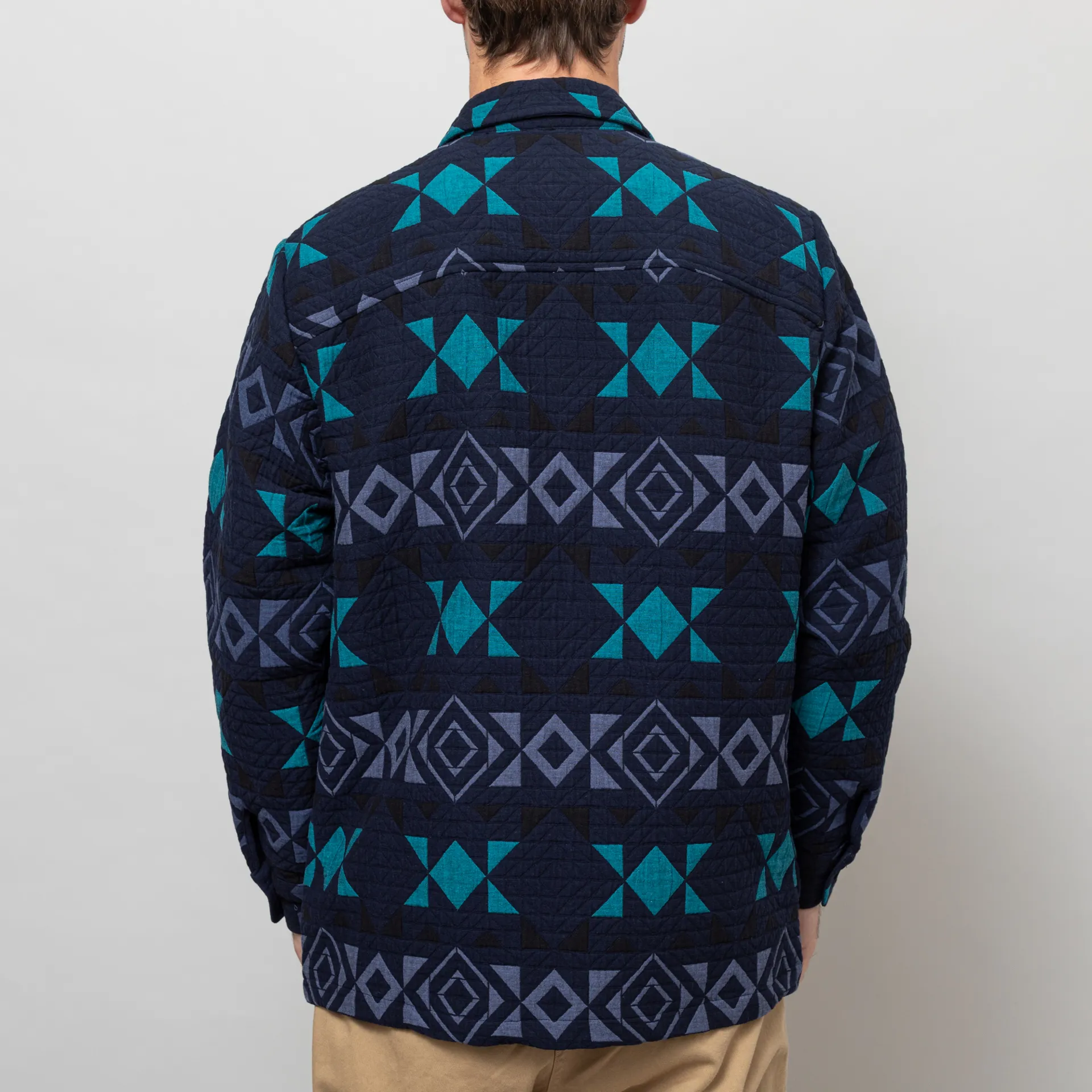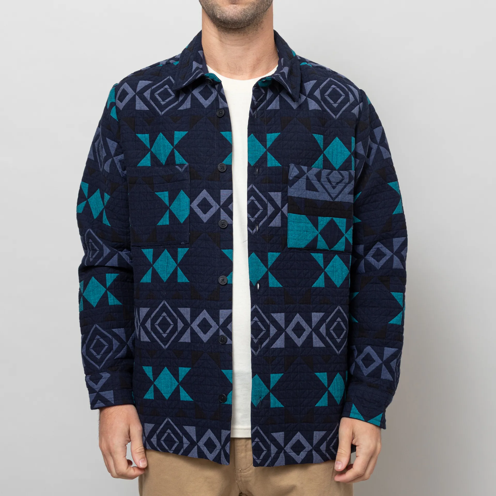 Wax London Otto Blanket Quilted Overshirt Navy Teal