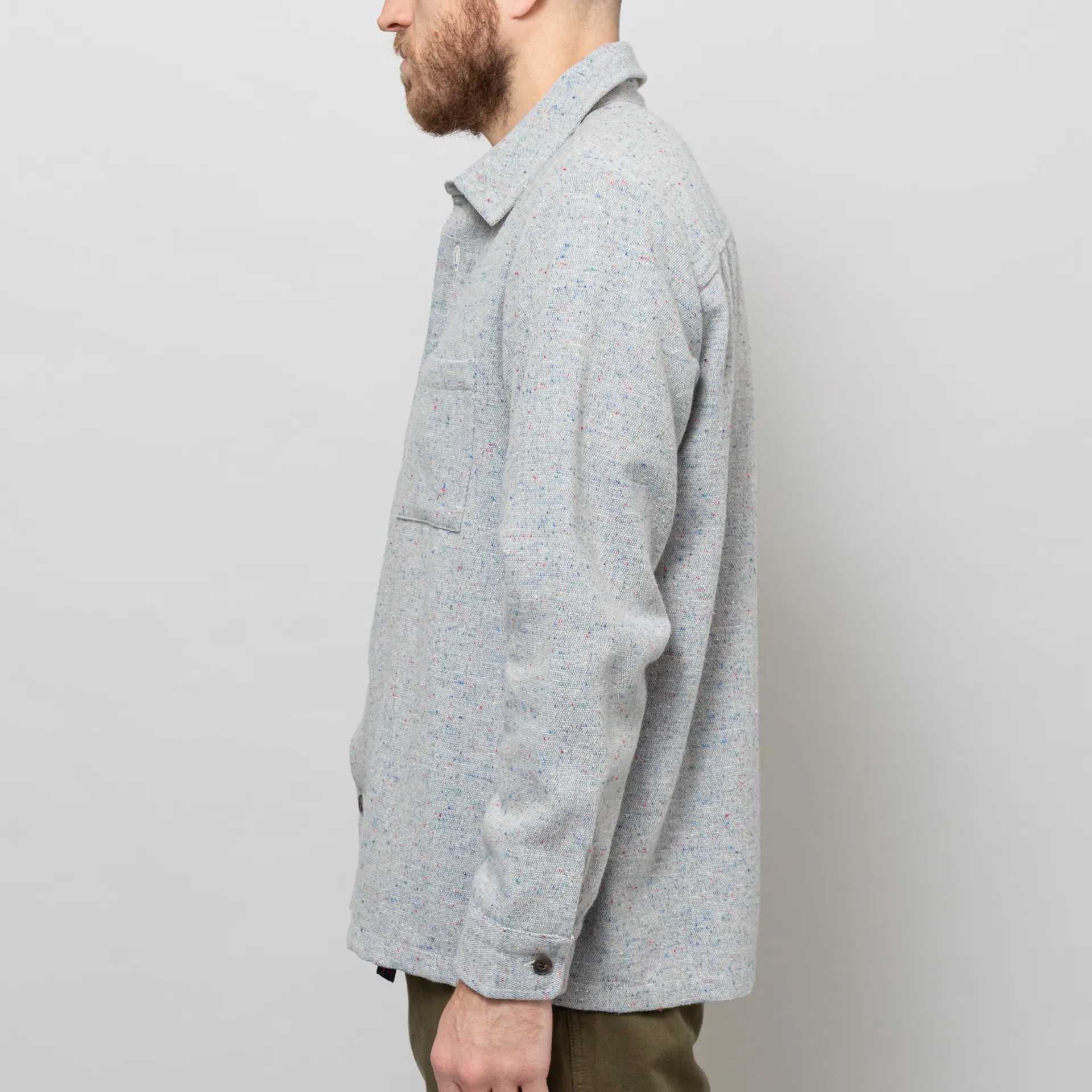 Wax London Whiting Overshirt Blue Wool Blend Fleck