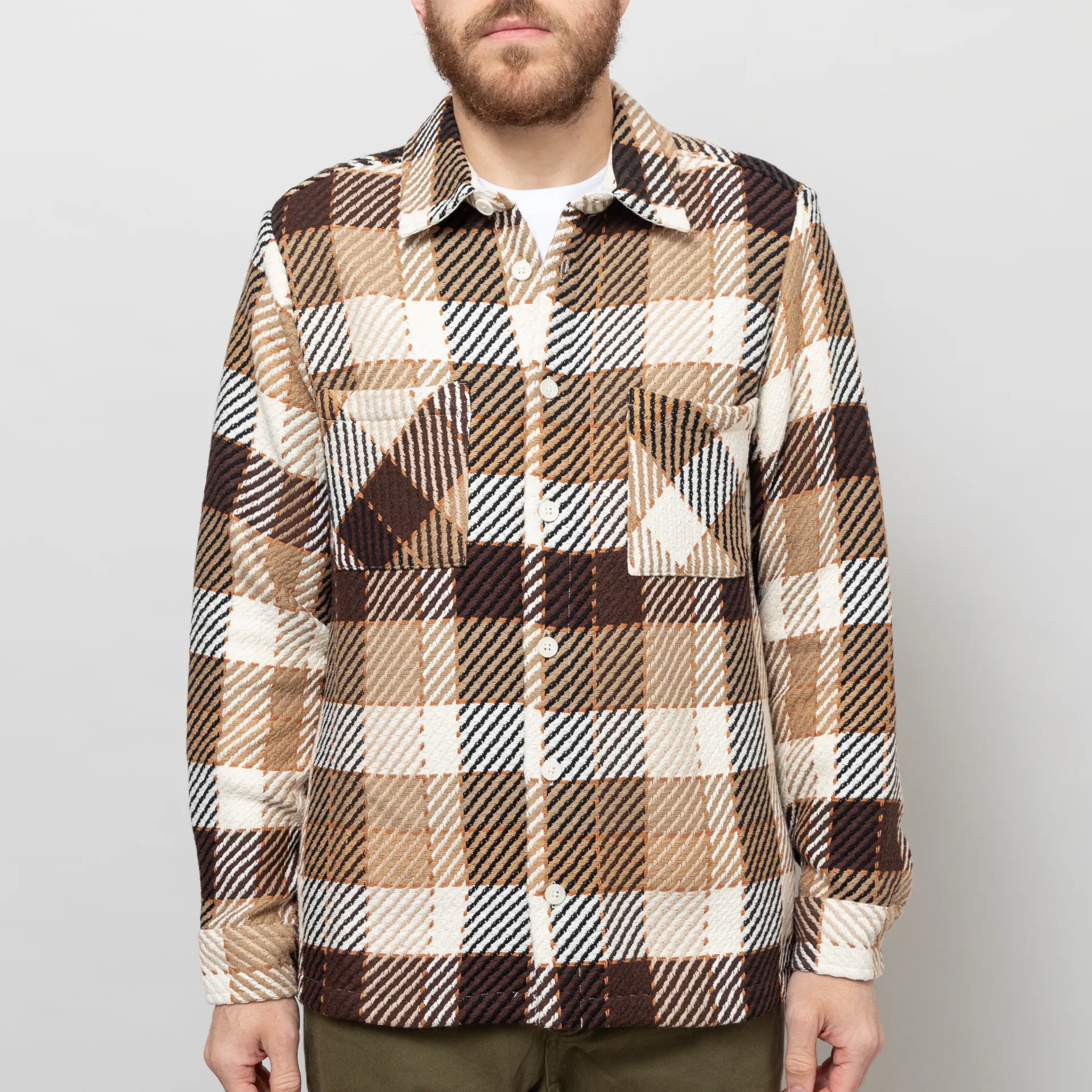Wax London Whiting Overshirt Natural Brown Pike Check