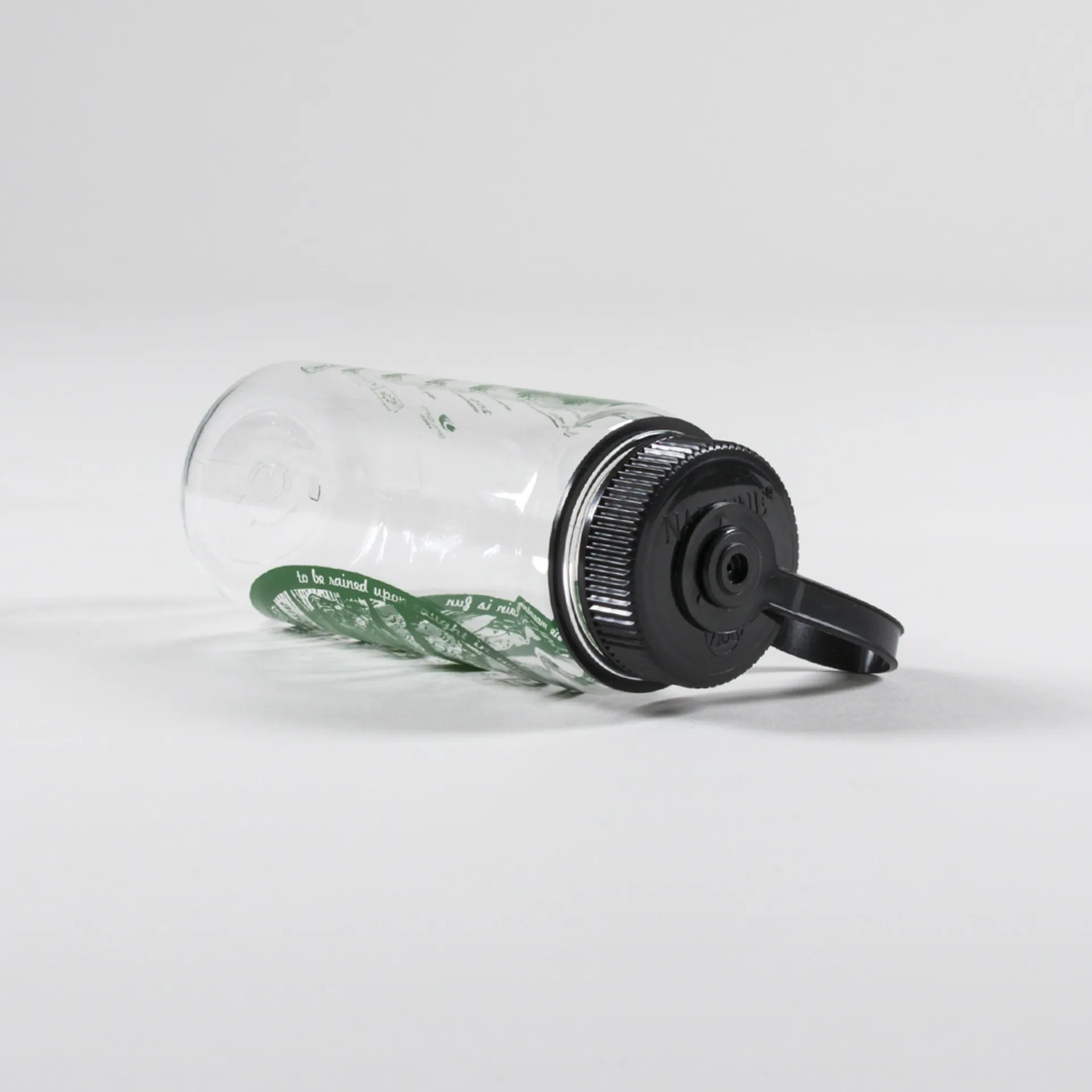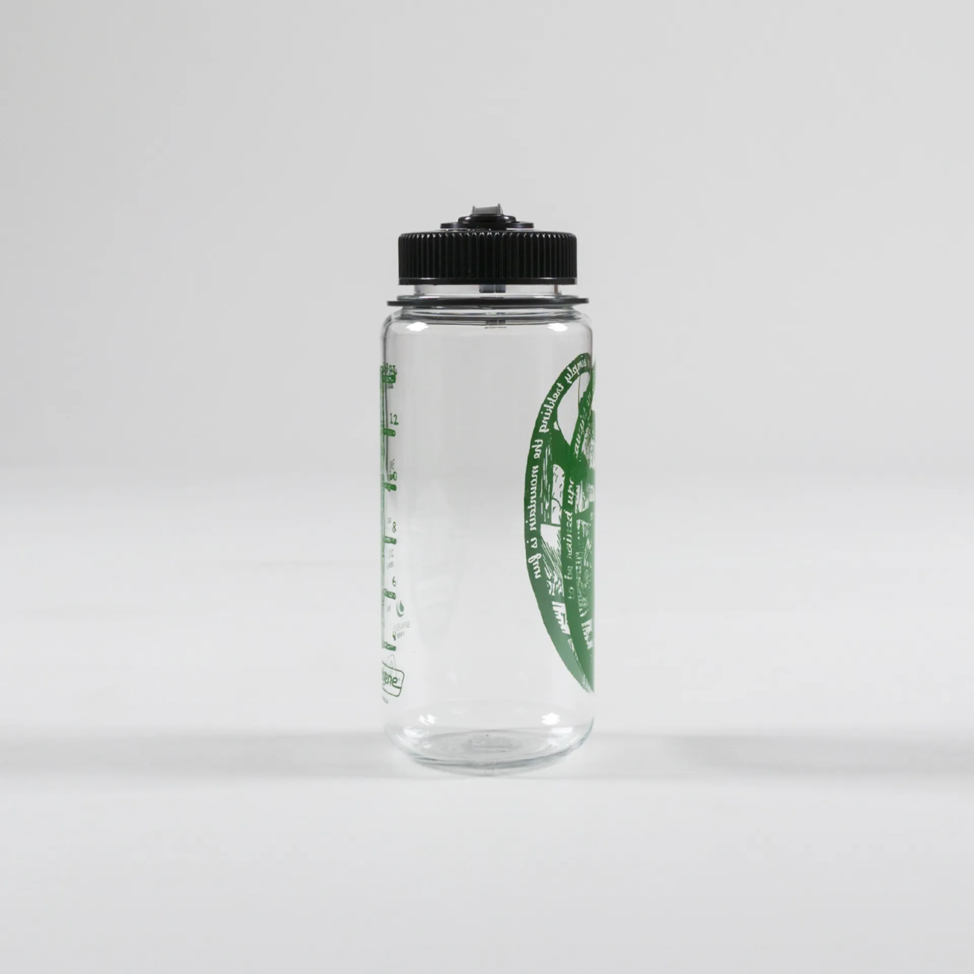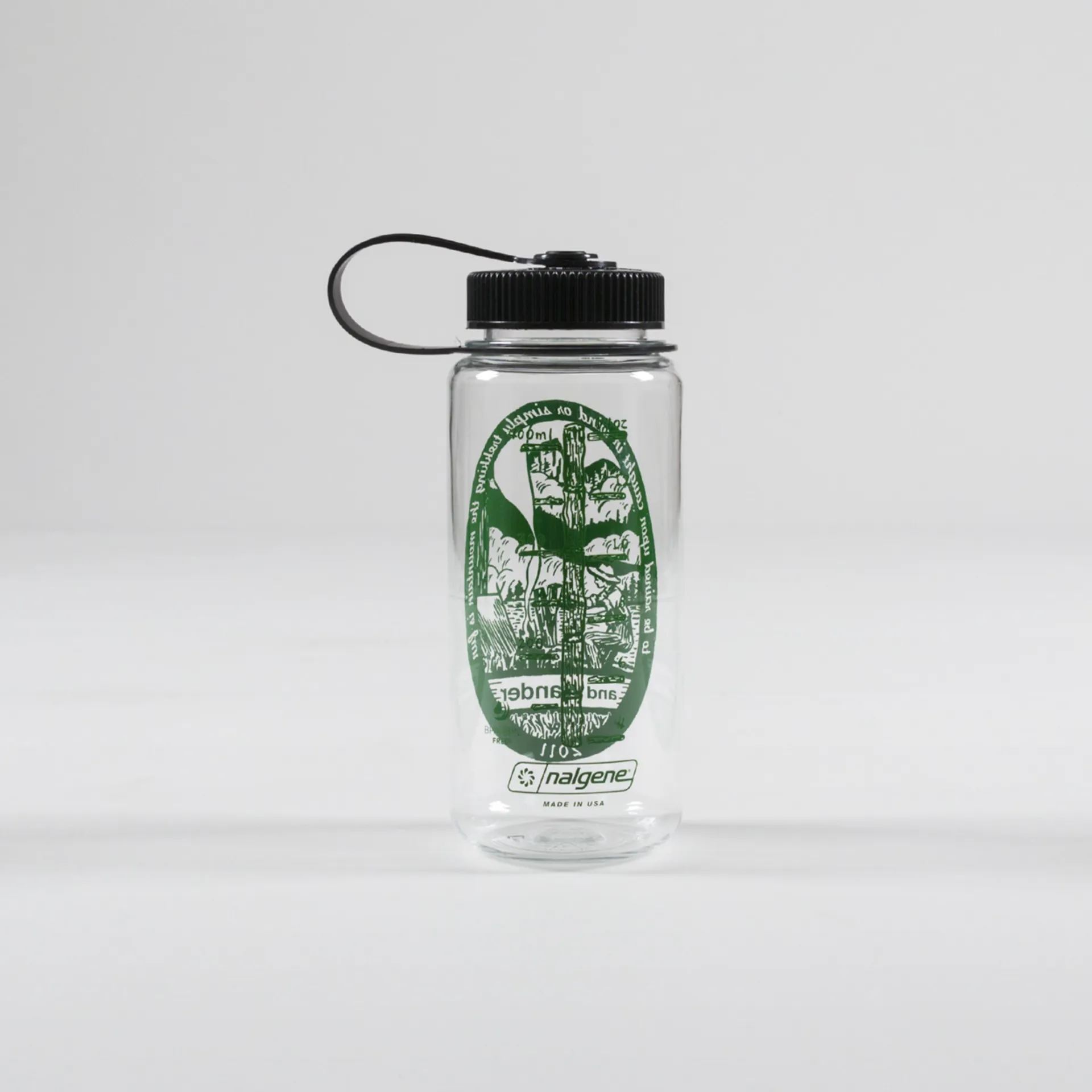 A drinks bottle from Nalgene, made for Japanese outerwear label And Wander. It's made from a BPA-free material with an attached screw-top, printed artwork and a 500ml capacity.