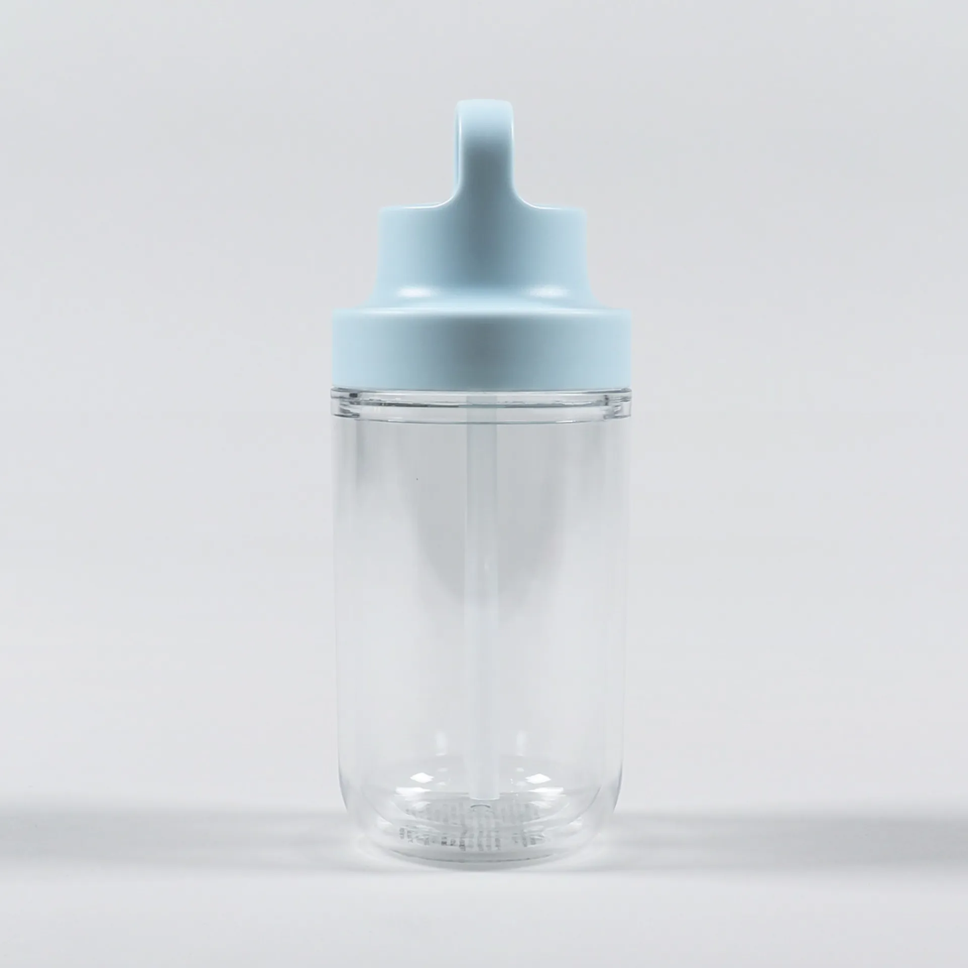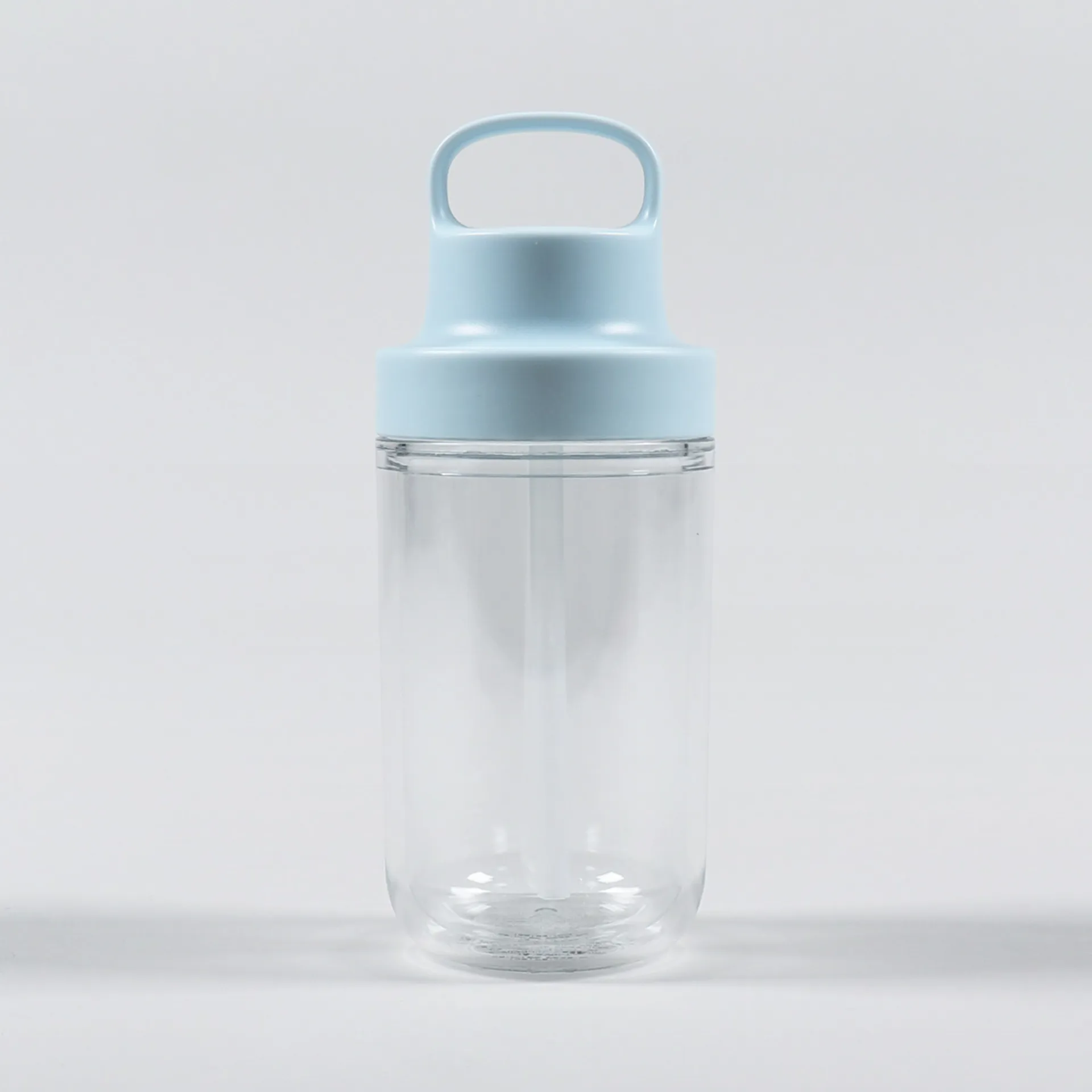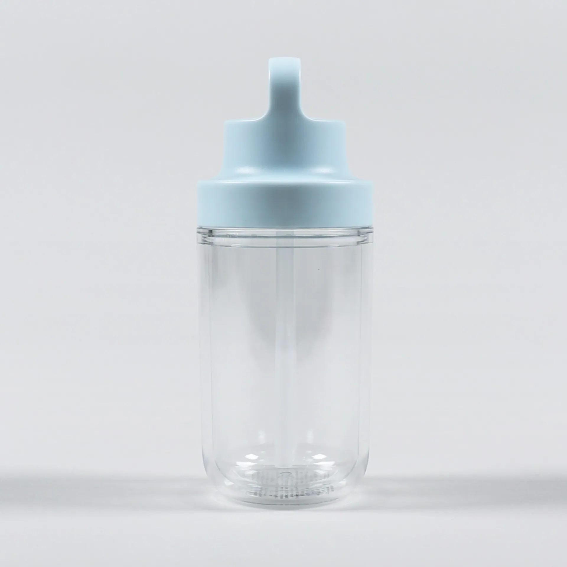 A bottle from Japanese homeware brand KINTO, made from a BPA-free copolyester with a two-part lid, with one to fully open and the other access a straw.