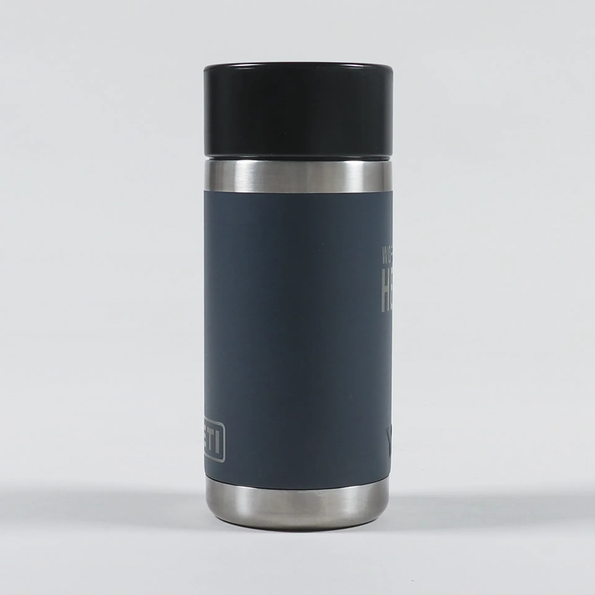 To one side is has a laser-cut WCH logo and an embossed YETI logo, with a cut YETI logo to the other side.