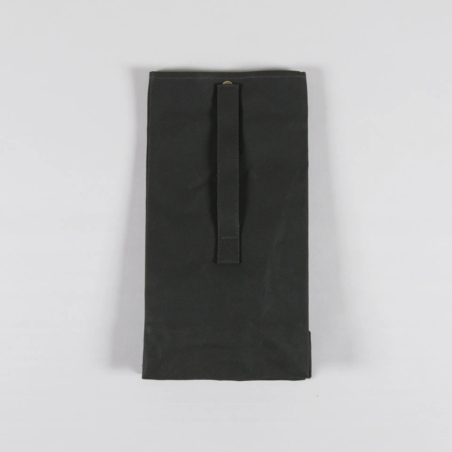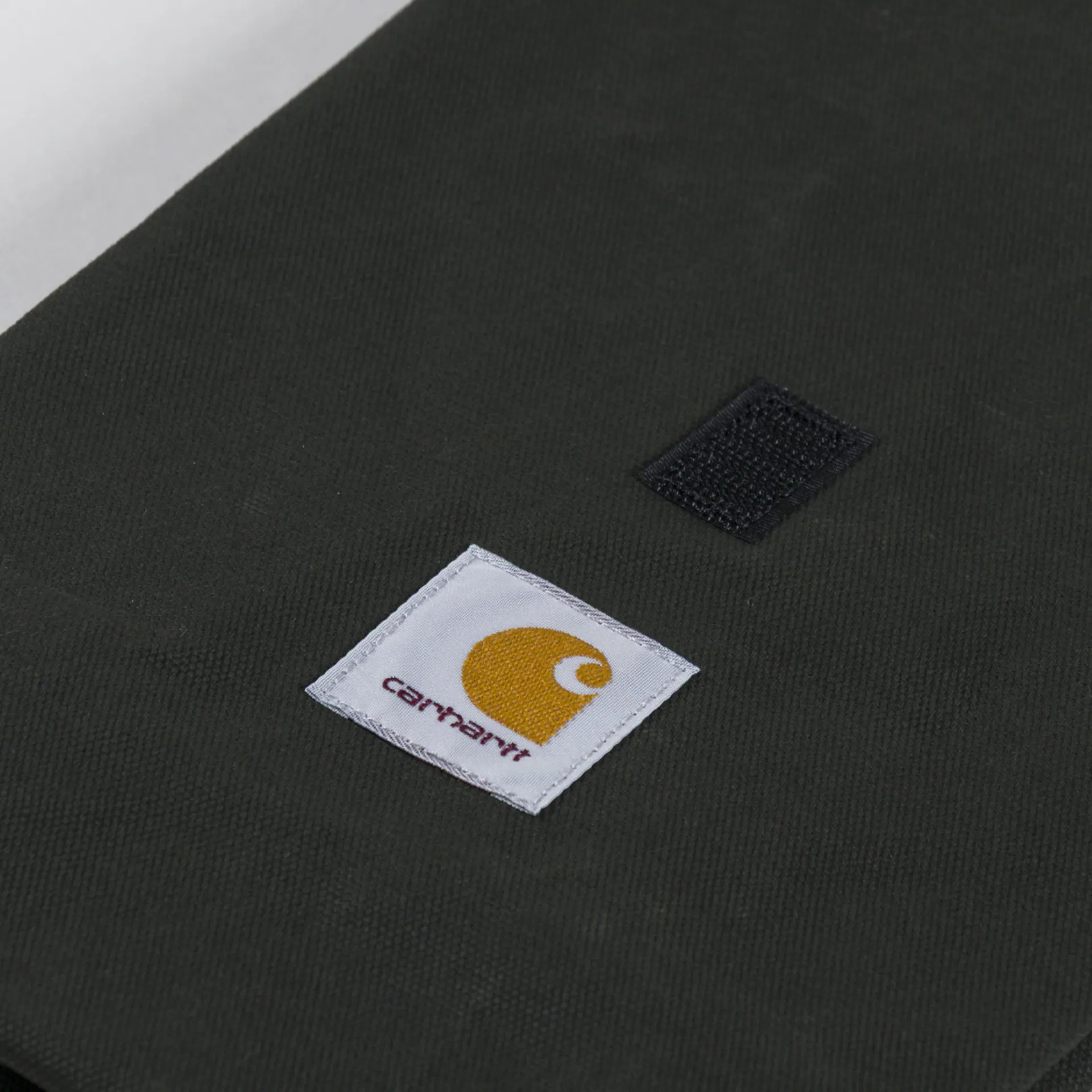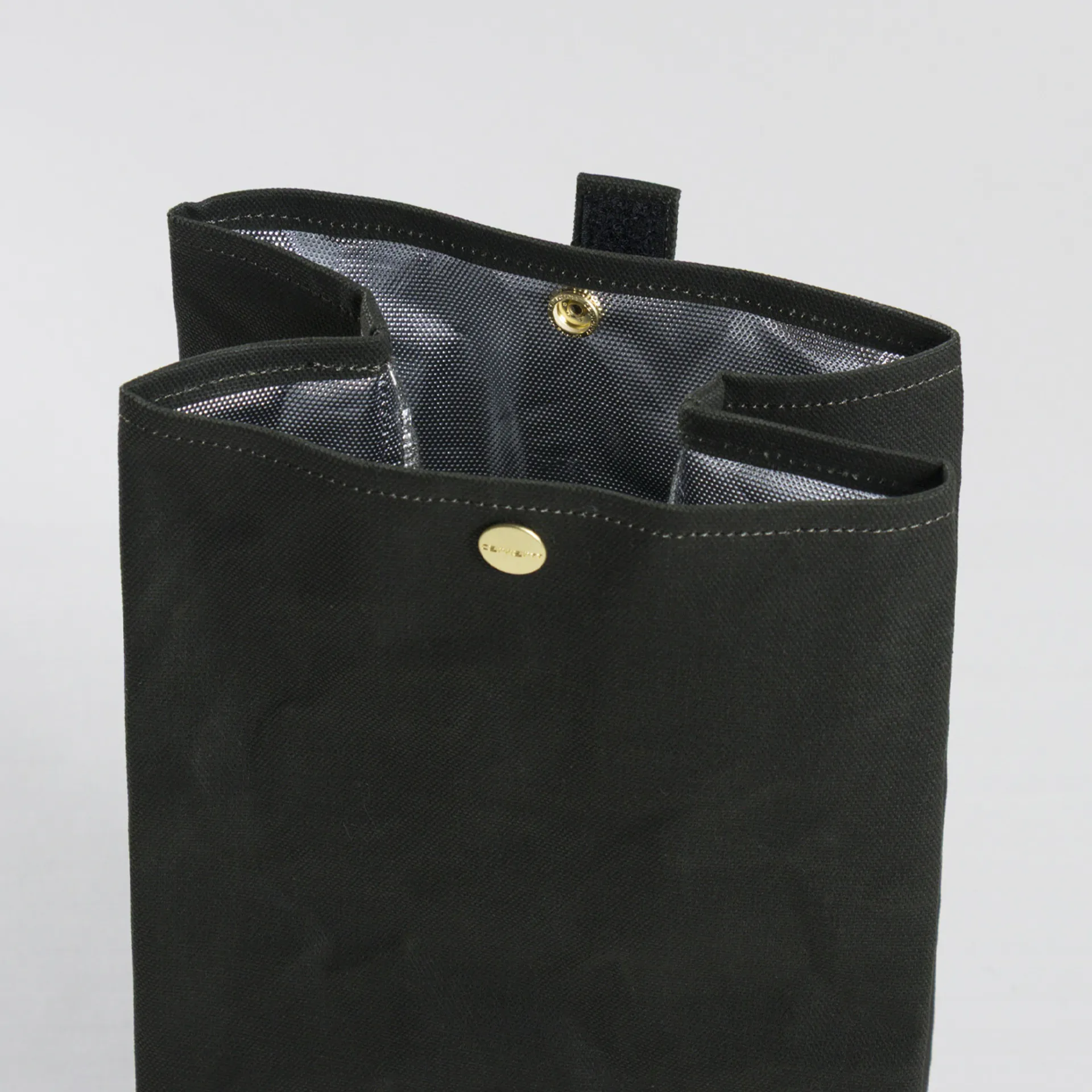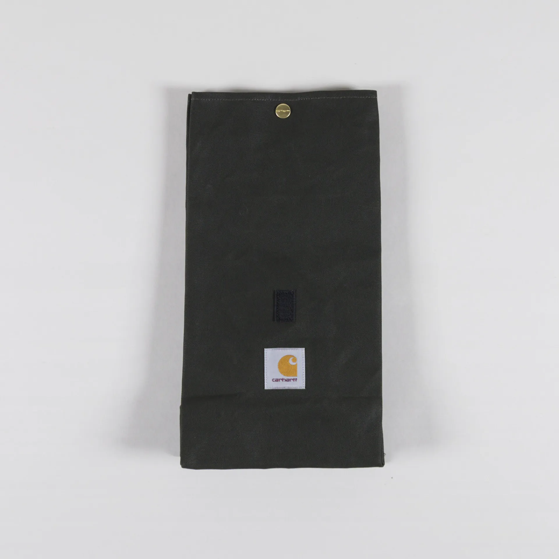 A lunch bag from Carhartt WIP, made of heavyweight Dearborn Canvas with an insulating lining and a waxed finish to the outside. Featuring a branded snap button closure at the top, a Velcro strap and a Carhartt WIP Square label.