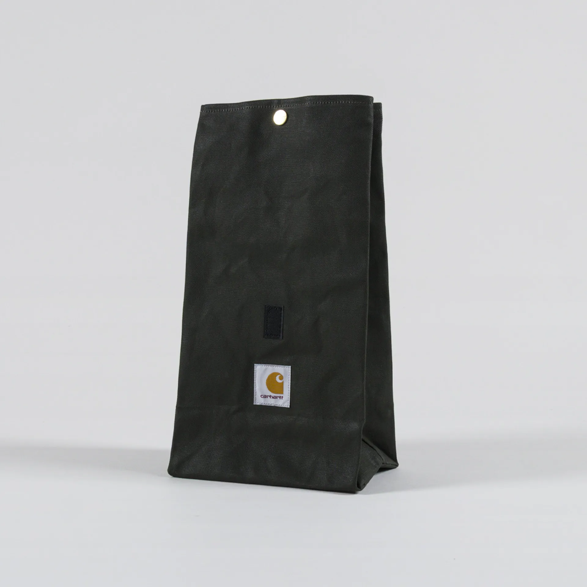 A lunch bag from Carhartt WIP, made of heavyweight Dearborn Canvas with an insulating lining and a waxed finish to the outside