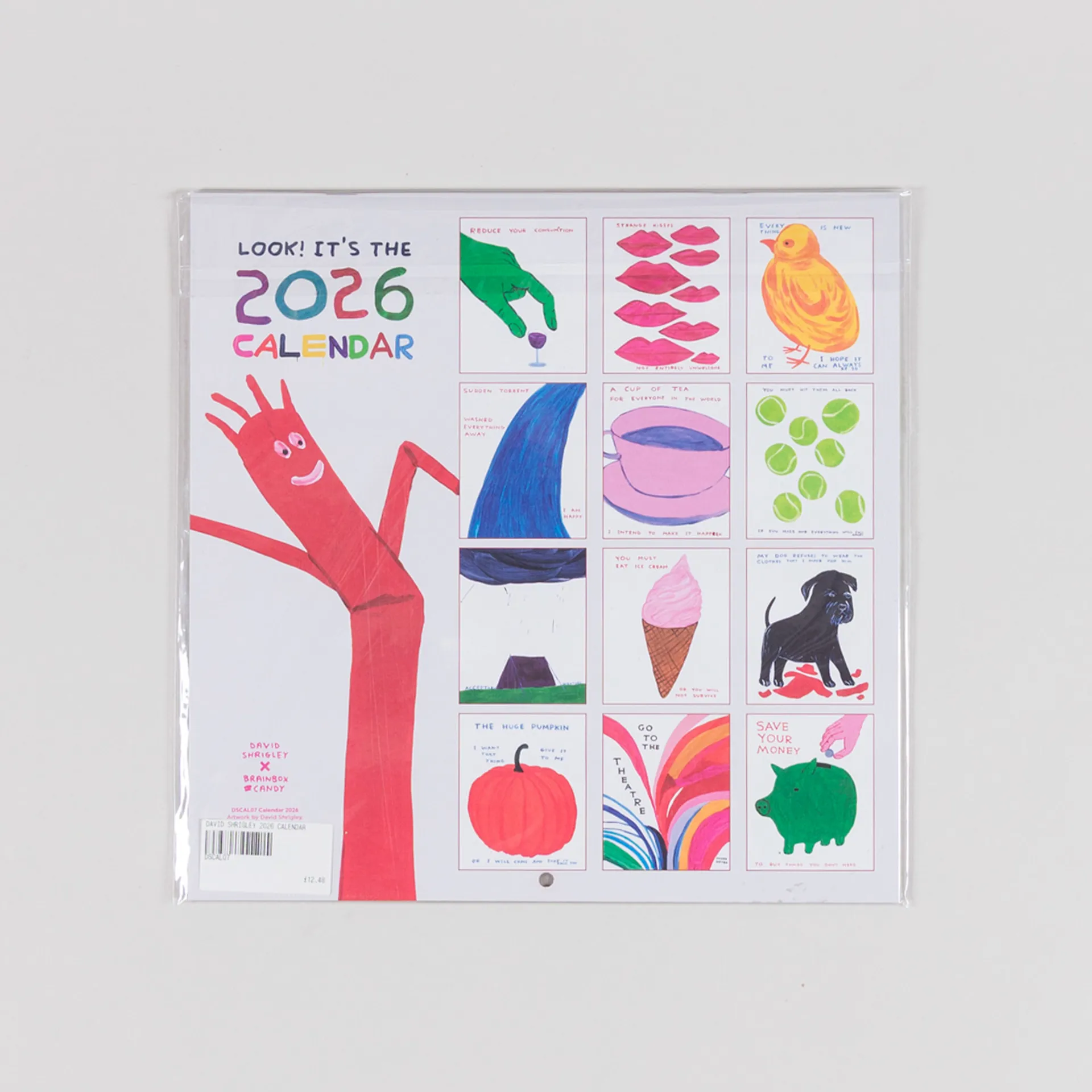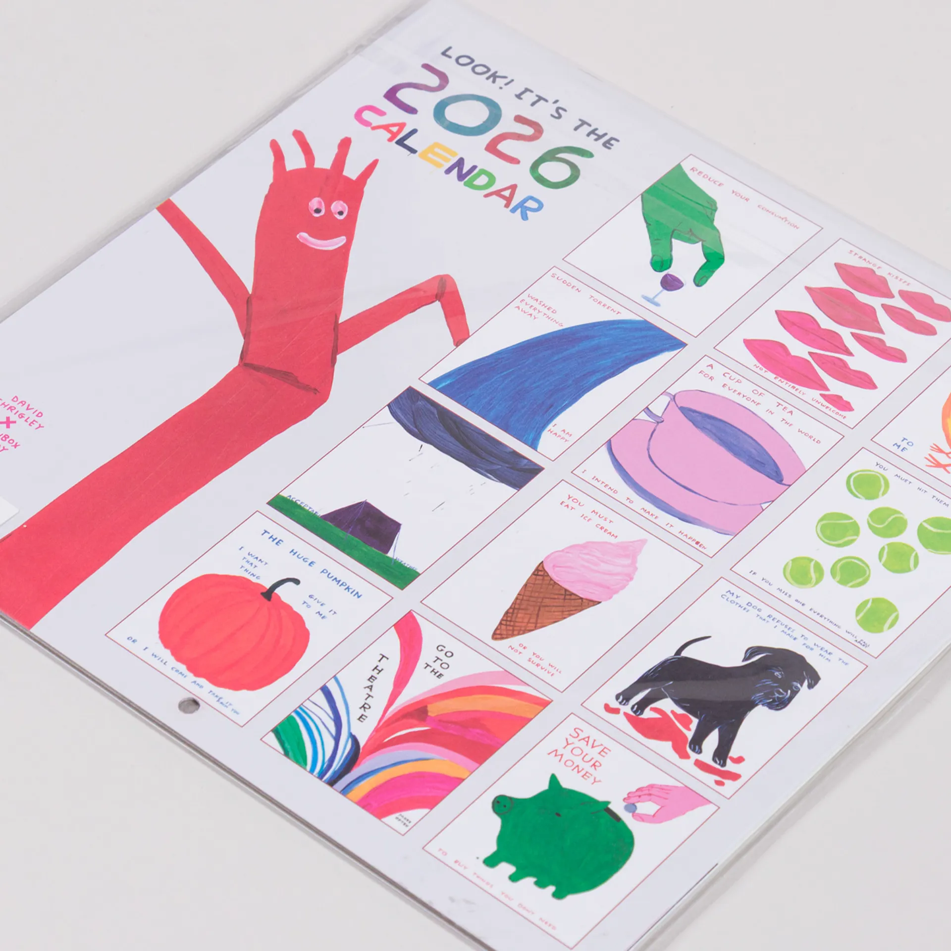 A 2026 calendar featuring illustrations by David Shrigley.