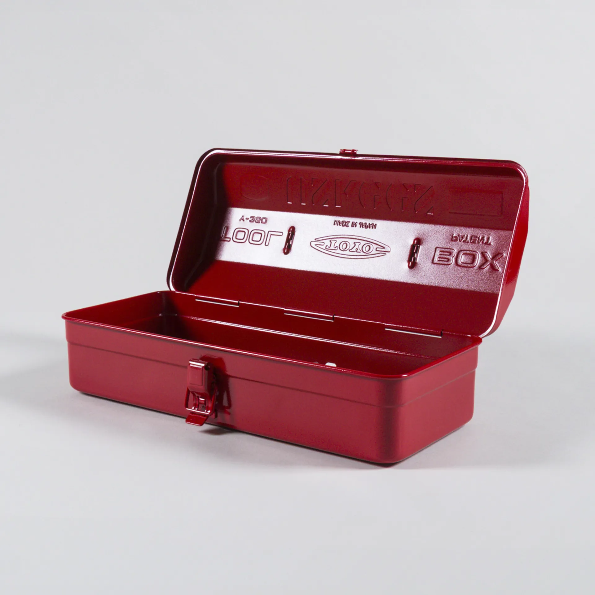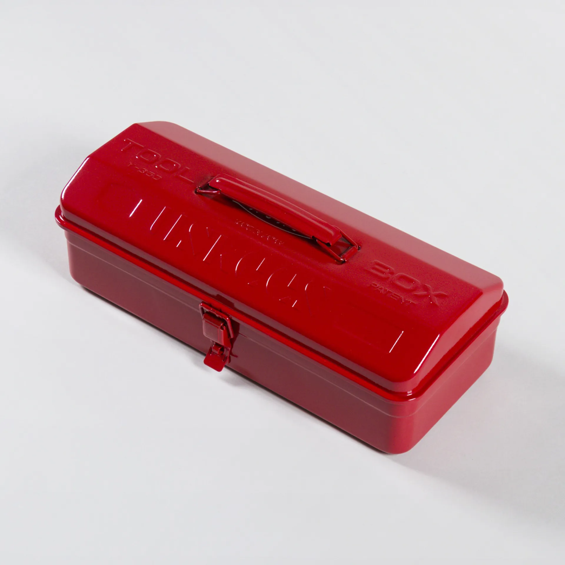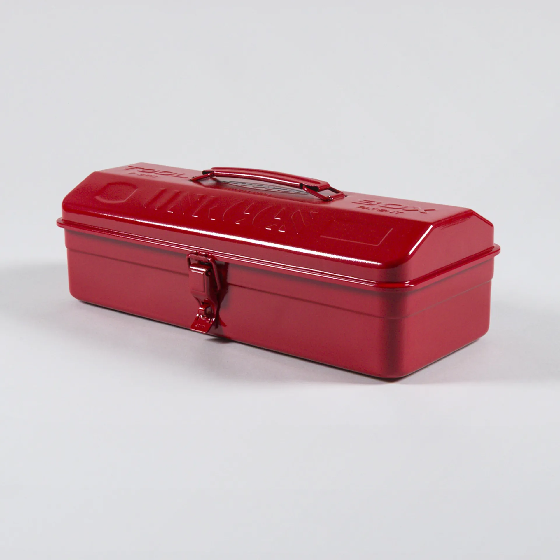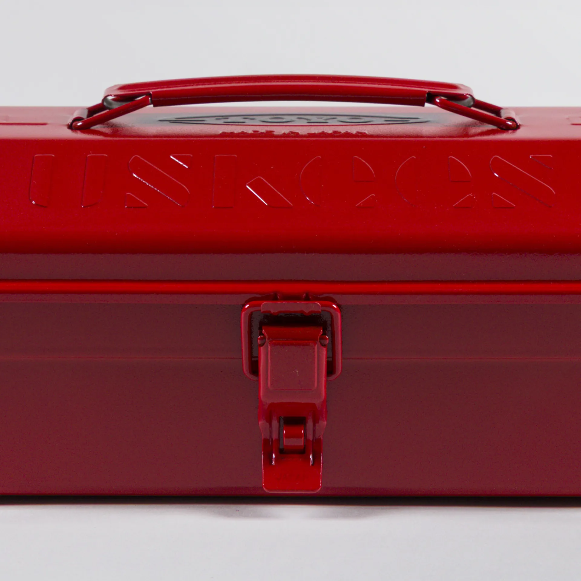 A tool box from the collaboration of Uskees and Toyo. Constructed from a single sheet of high-quality pressed Japanese steel with tonal branding throughout. It features a rounded handle, a cylindrical lock and a camber-top for extra capacity.