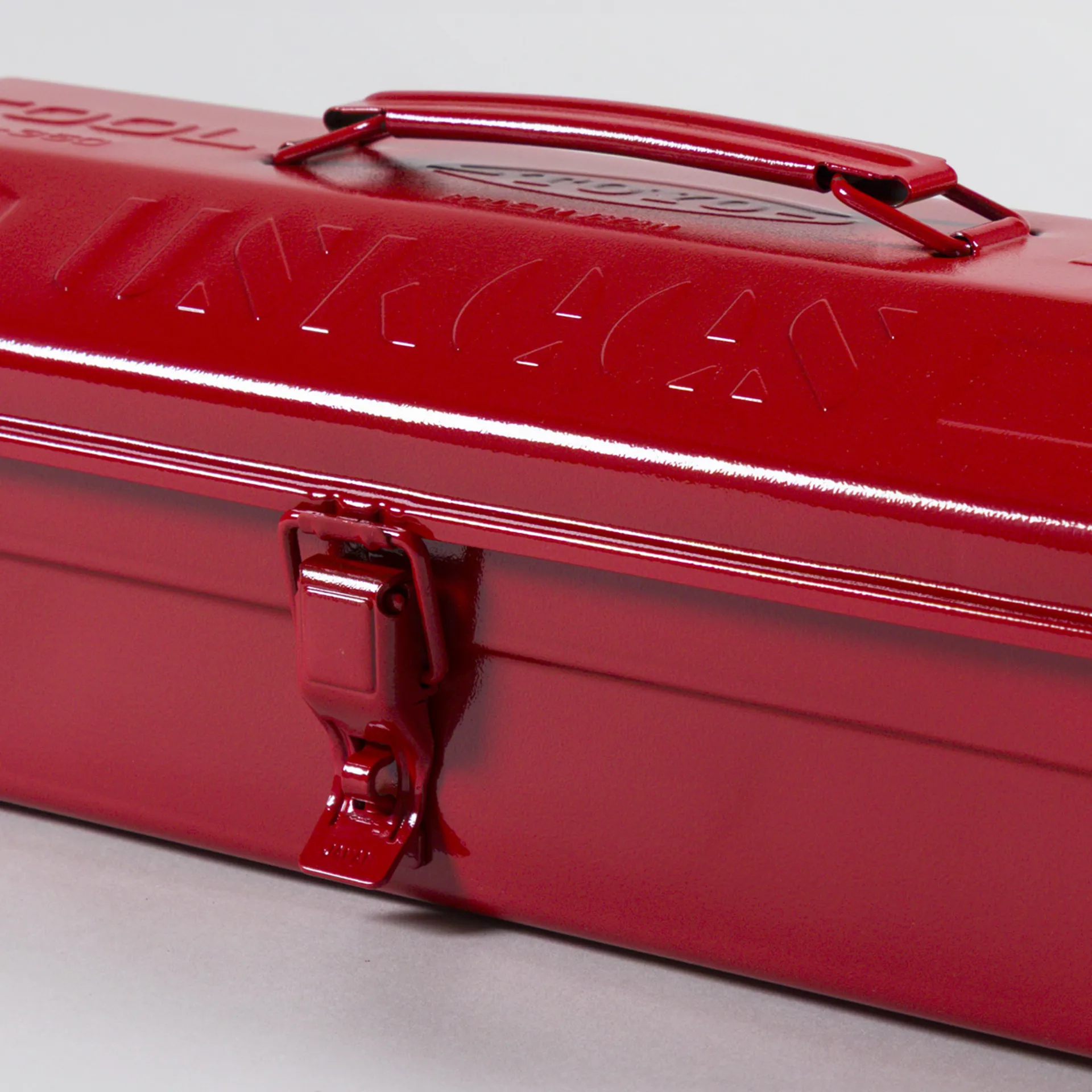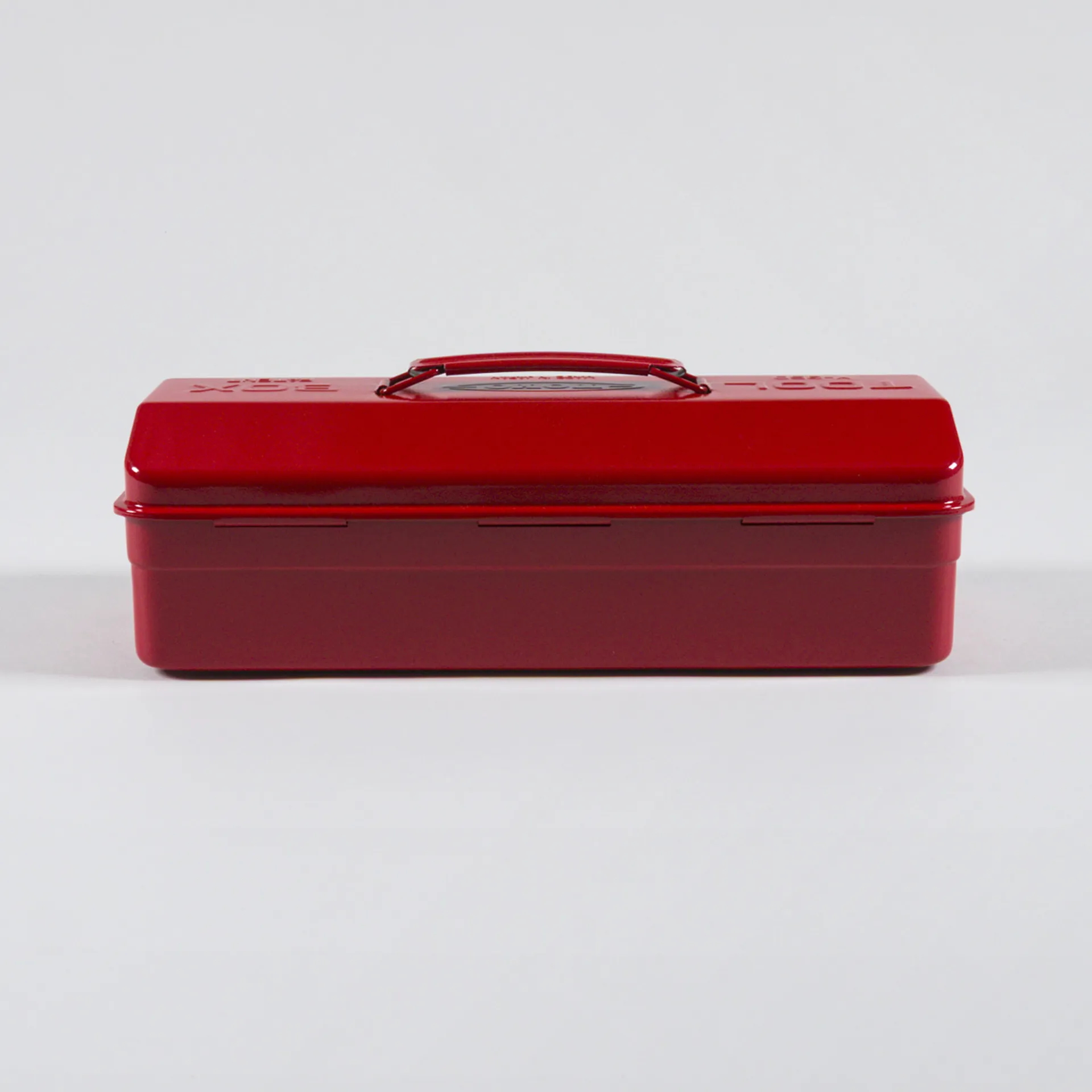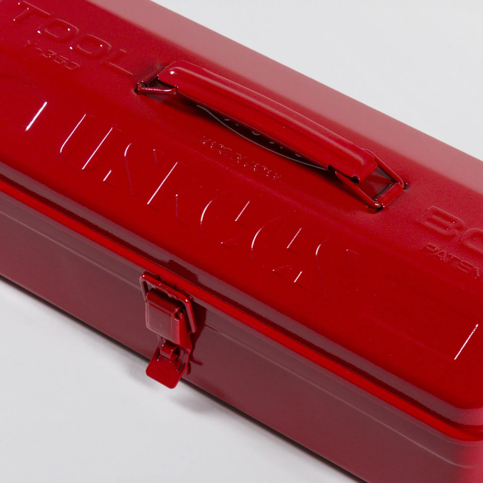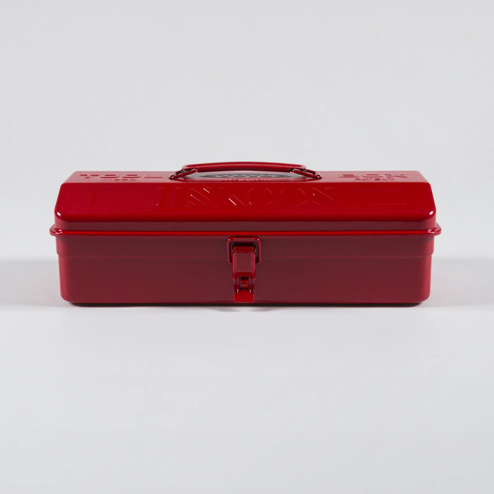 A tool box from the collaboration of Uskees and Toyo. Constructed from a single sheet of high-quality pressed Japanese steel with tonal branding throughout. It features a rounded handle, a cylindrical lock and a camber-top for extra capacity.