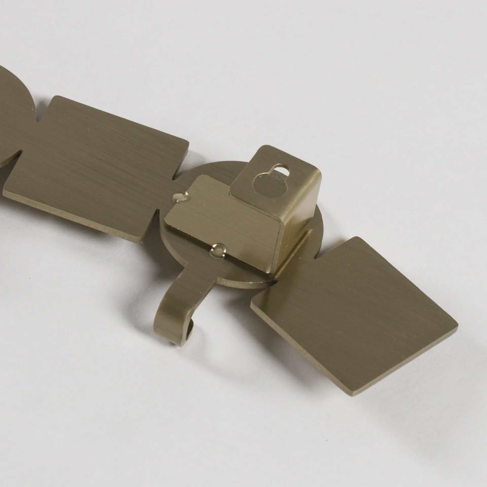 A wall coat hanger from Carhartt WIP, constructed from stainless steel with gold-tone plating, with four hooks, engraved lettering and includes screws and dowels which can be used to attach the hanger to the wall.