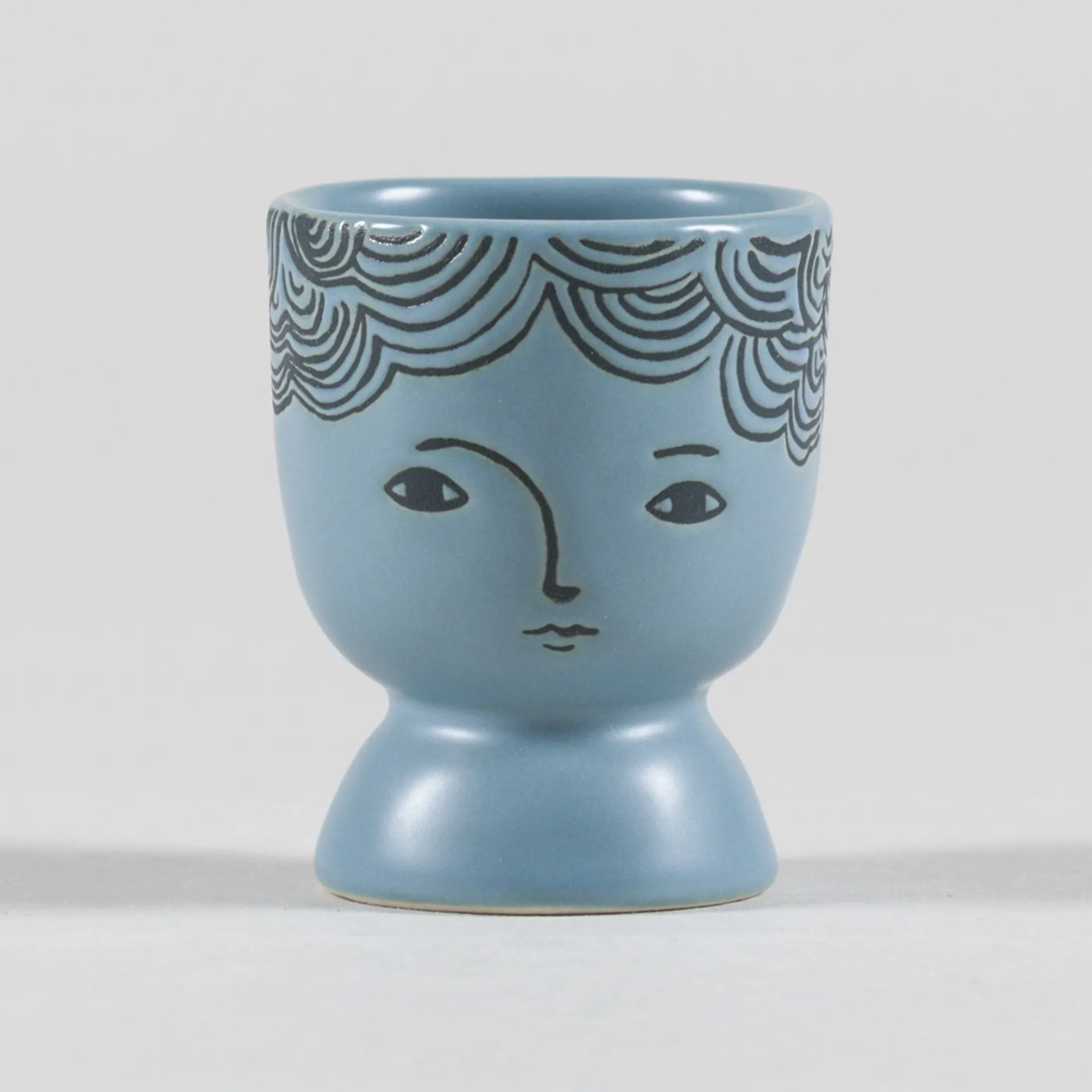 An egg cup from Donna Wilson, crafted from sturdy and tactile stoneware with debossed graphics.
