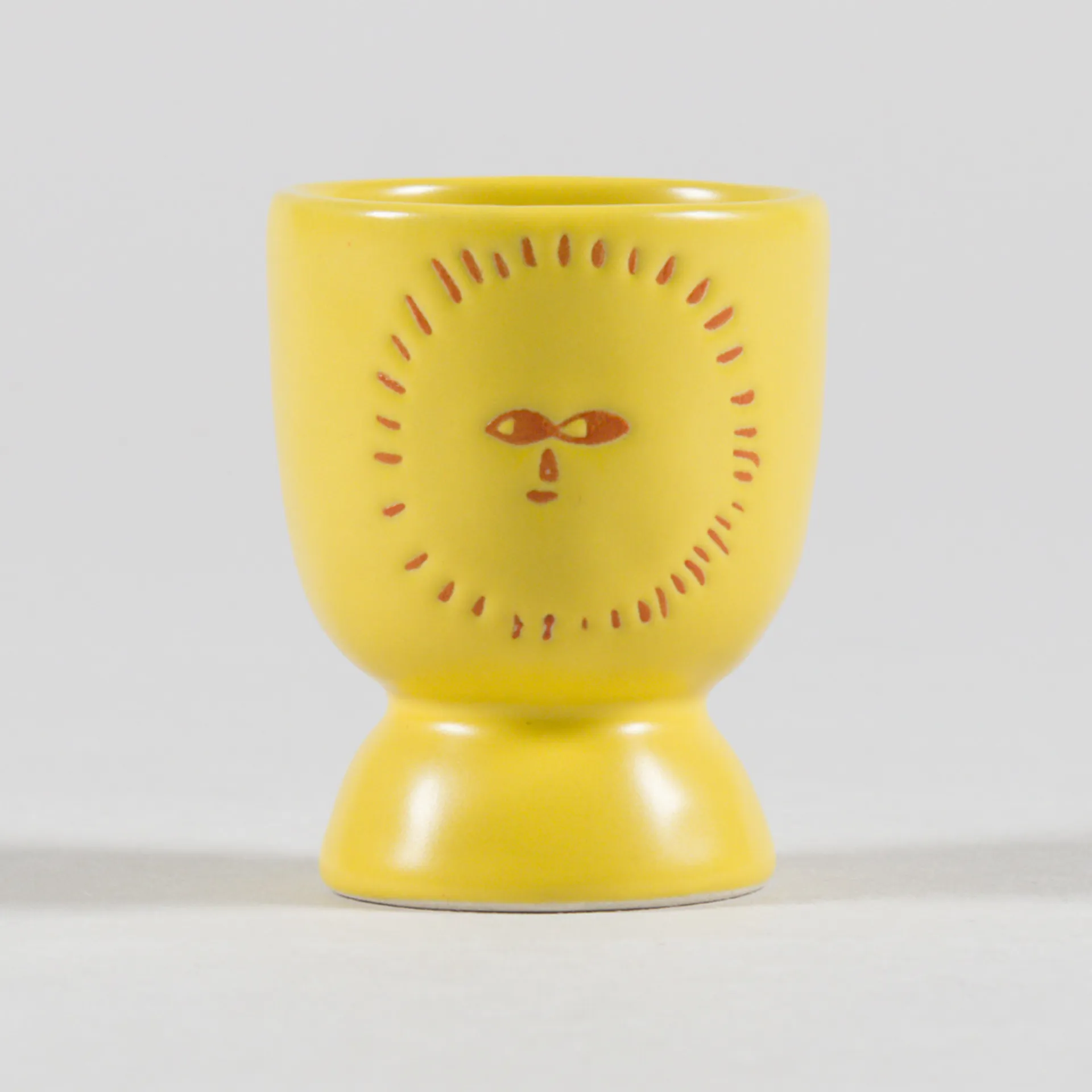 An egg cup from Donna Wilson, crafted from sturdy and tactile stoneware with debossed graphics.