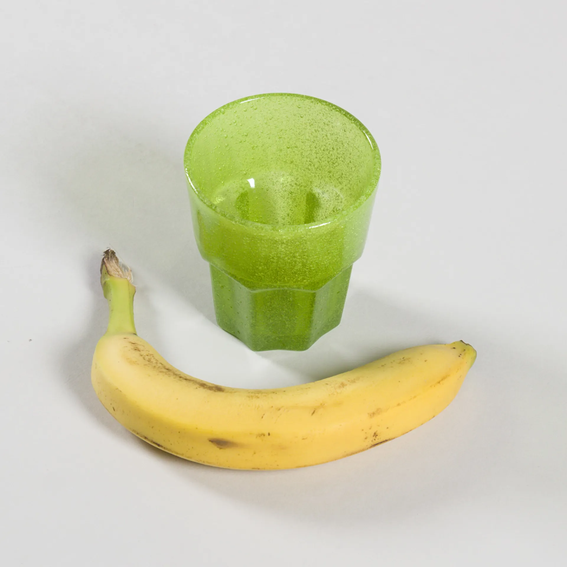 A set of six colourful glasses from HKLIVING with a textured, bubble-like finish.