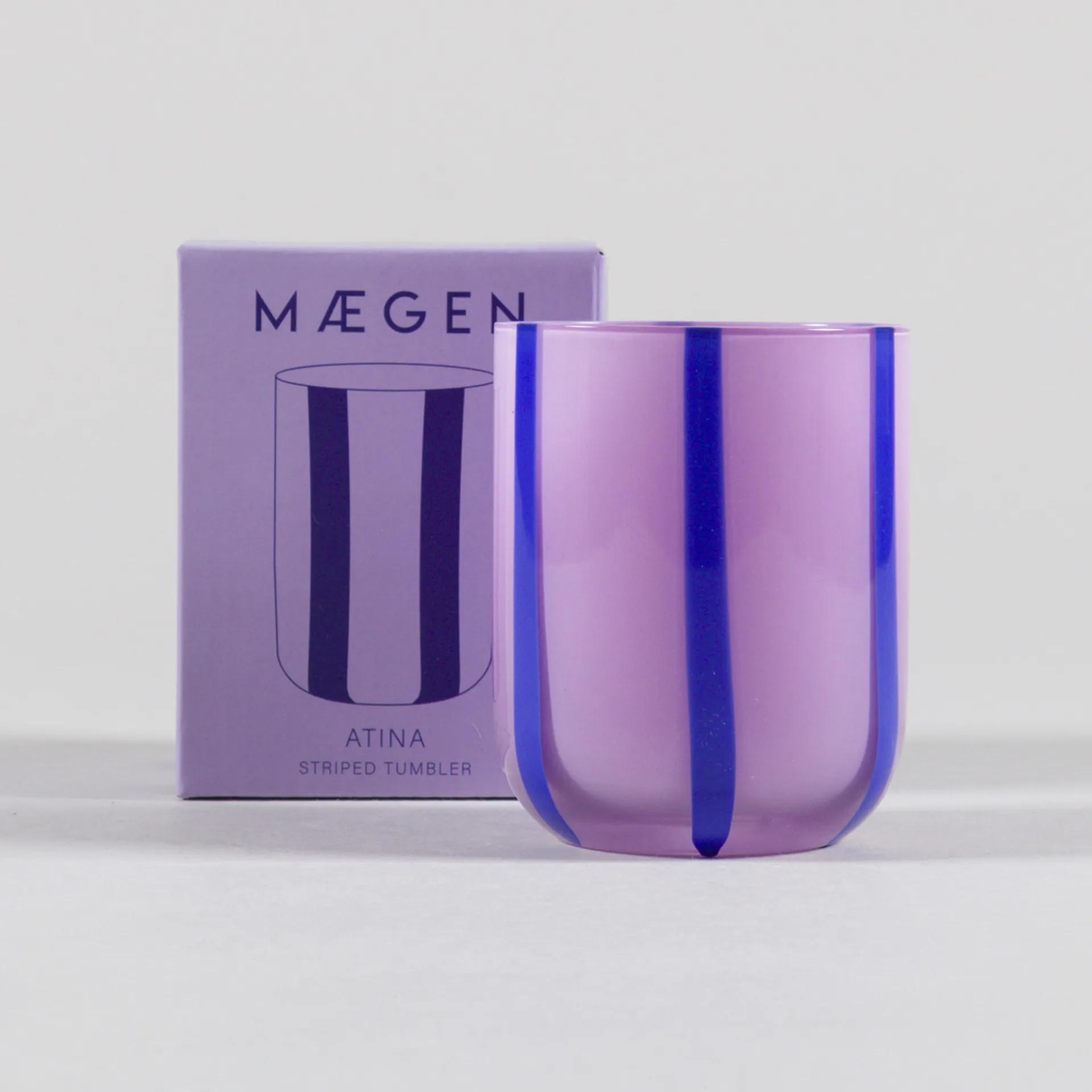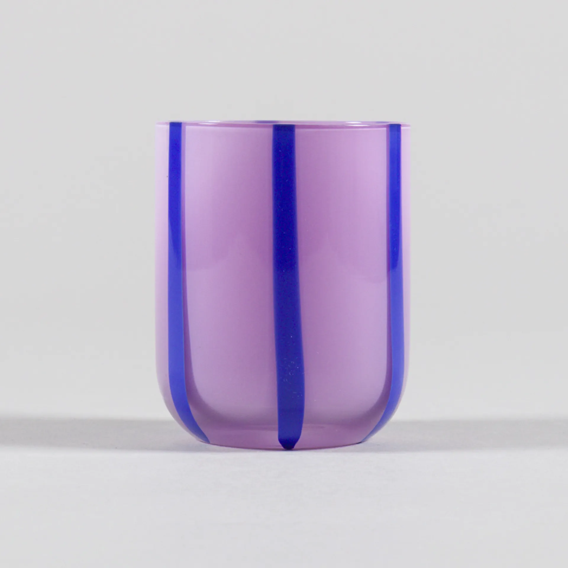 A glass tumbler from Maegen with an all-over striped design