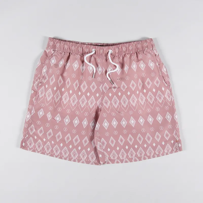 Far Afield Printed Swim Shorts Diamonds Mahogany Pink